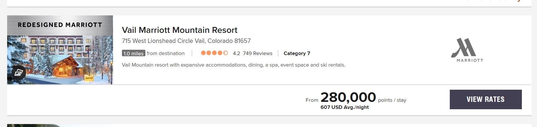 When we turned to points, there is some availability left, but you'll need a lot of Marriott Bonvoy points for five nights in Vail.