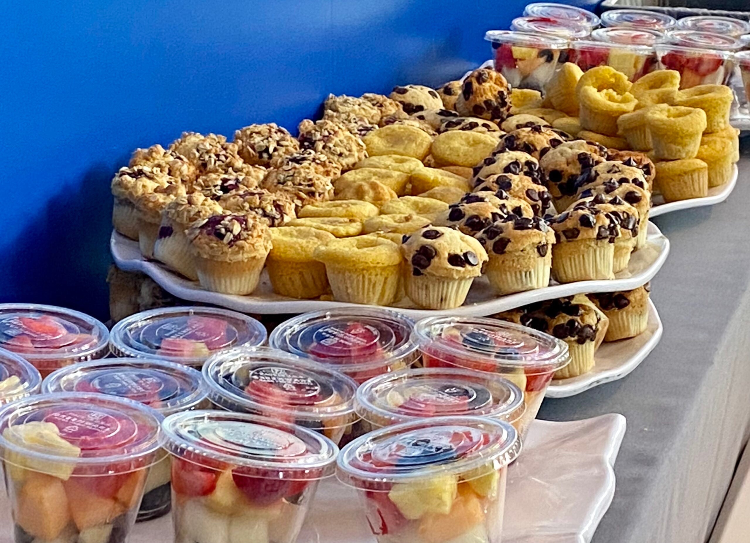 Expect to wait in line, again, for the complimentary snacks. When I visited, there was a selection of muffins and fruit plus cups of sweet tea, lemonade and cucumber-infused water. All other drinks carry an additional charge, including bottled Evian water for $6.