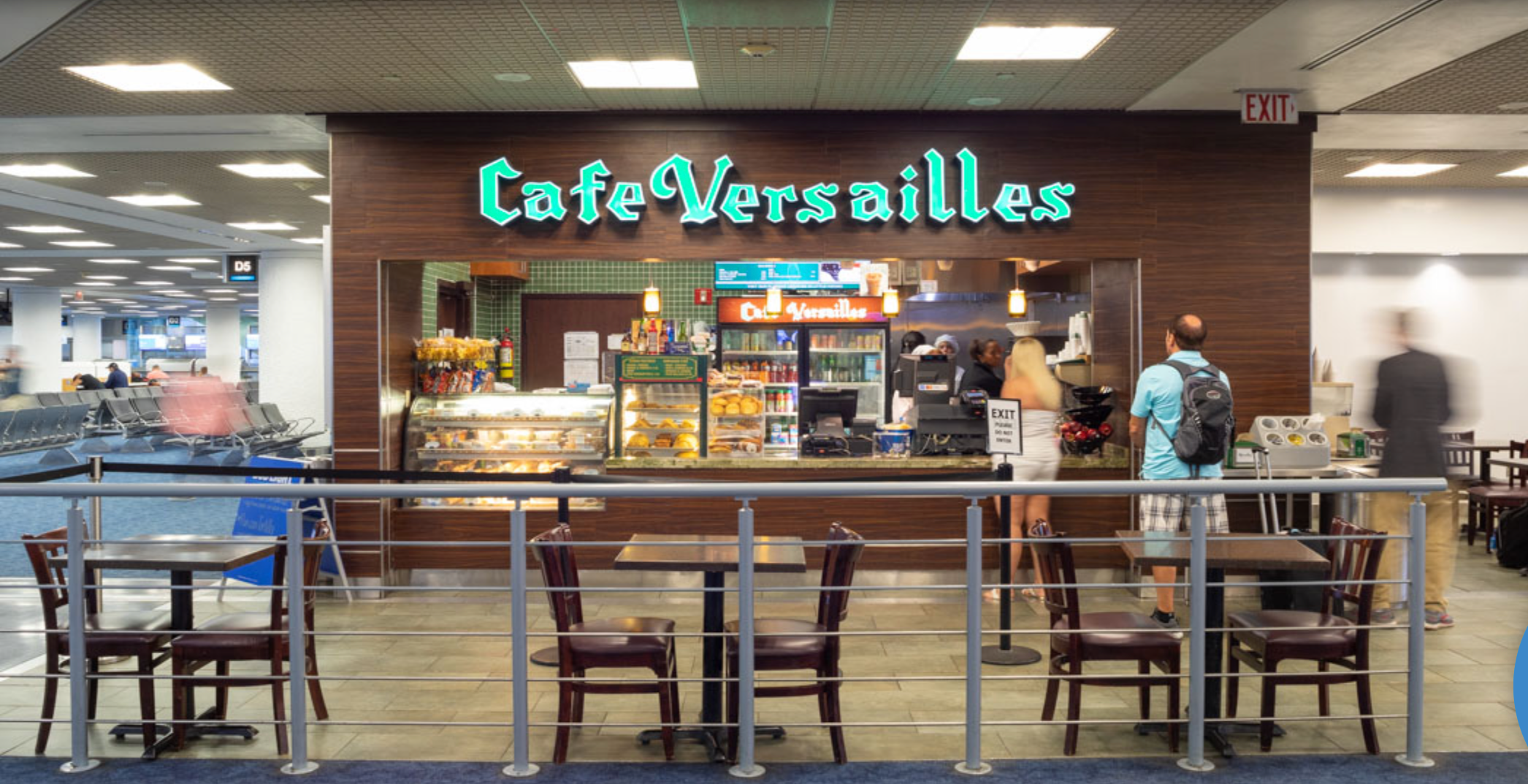 When I was in college, I became addicted to Cuban coffee, so every time I fly in or out of Miami International Airport (MIA), I make a beeline to Café Versailles in the airport's North Terminal, concourse D (by gate D5 on the second floor) for a Cuban coffee fix. Know, though, that you can also get Cuban food staples here.