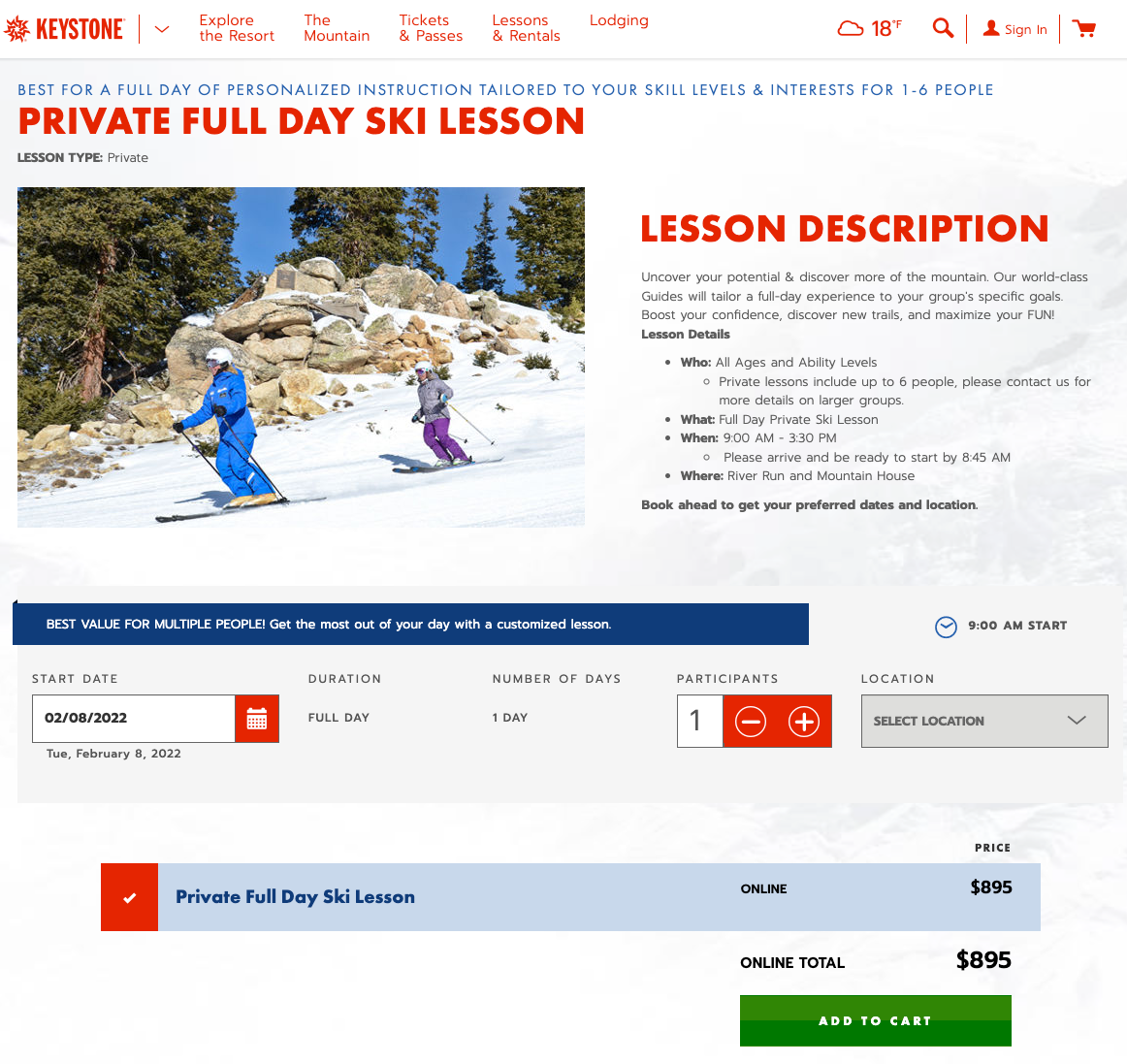 Private ski lessons that can be incredibly expensive, so be sure to budget for them. (Screenshot courtesy of Vail Resorts Management Company)