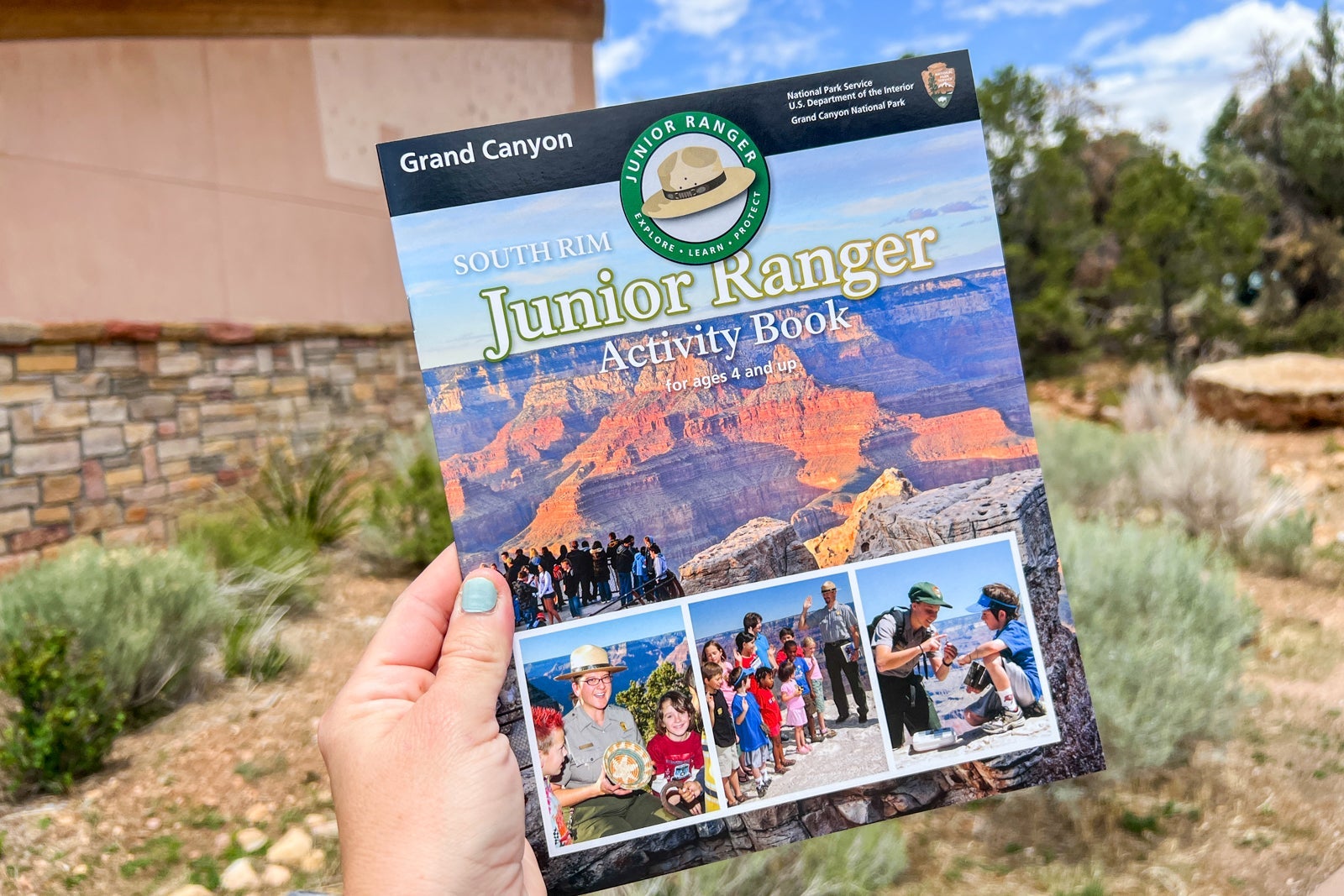 While you are at the visitor center, ask a ranger for a Junior Ranger booklet. Once you complete the activities inside (or at least make an attempt), you can turn the book in at the main visitor center, the Yavapai Geology Museum or Kolb Studio and your kids will be inducted as official Junior Rangers. My kids had to recite a pledge and then received a certificate and commemorative badge. The activities included things like writing a poem and completing a scavenger hunt.