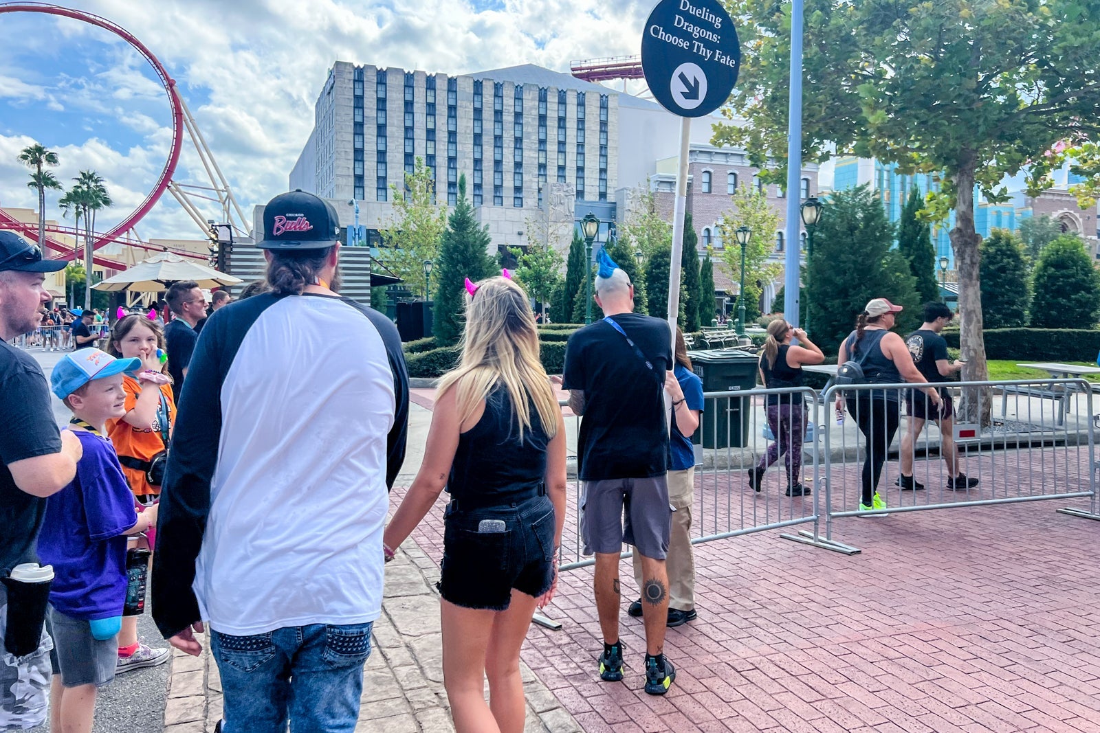 At 5:13 p.m., we entered our first house, Dueling Dragons: Choose Thy Fate. There was virtually no wait, as we were some of the first in line in the 'Stay and Scream' area.