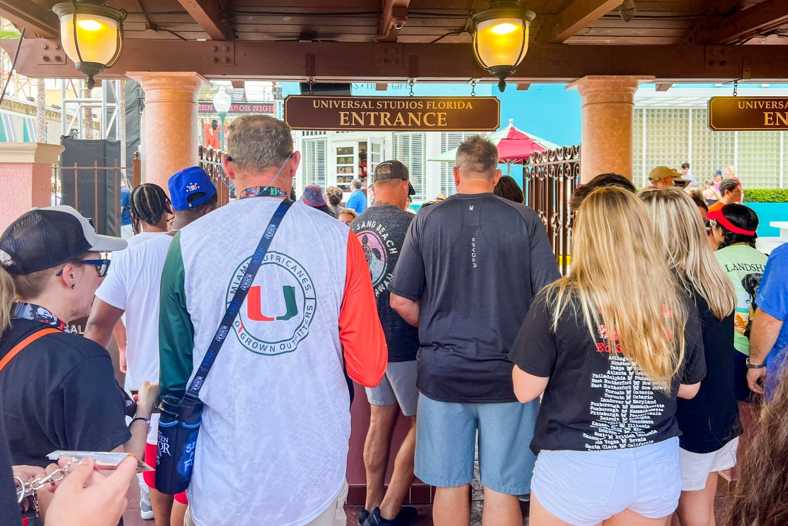 The park closes to regular daytime guests at 5 p.m., but your 'Stay and Scream' ticket allows you to stay inside the park while it prepares for that evening's event. If you don't make it in by 5 p.m., you'll be stuck waiting in line at the front gates with the other attendees.