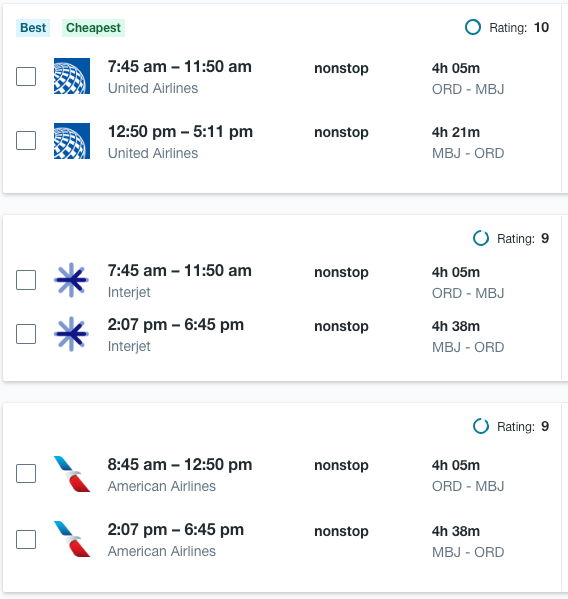 Do you have an address in the middle of the country? If so, there are also some excellent routes that can get you to the Caribbean islands fairly quickly, again through airline hubs such as Dallas, Houston, Chicago and others. There are also nonstop flights to Hawaii from many of those same hub cities. This means travelers in the middle may have flight possibilities in both directions.