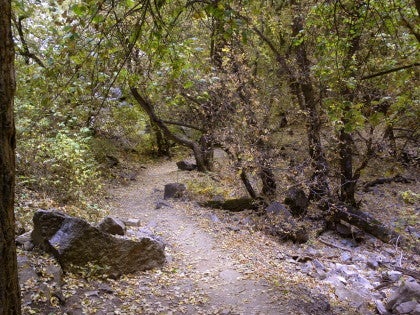 The hike is up the Dead Horse Creek Canyon and is made mostly under a forest canopy and alongside a vibrant stream.
