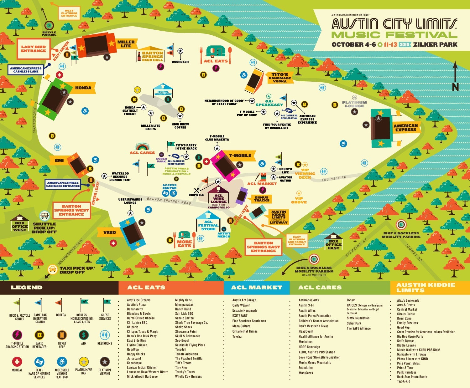 To get in and out of the festival itself, you'll need to enter Zilker Park through one of three main gates (there are two additional east and west entrances for ACL platinum attendees). They are located at the northwest, southwest and southeast corners of the park, respectively.