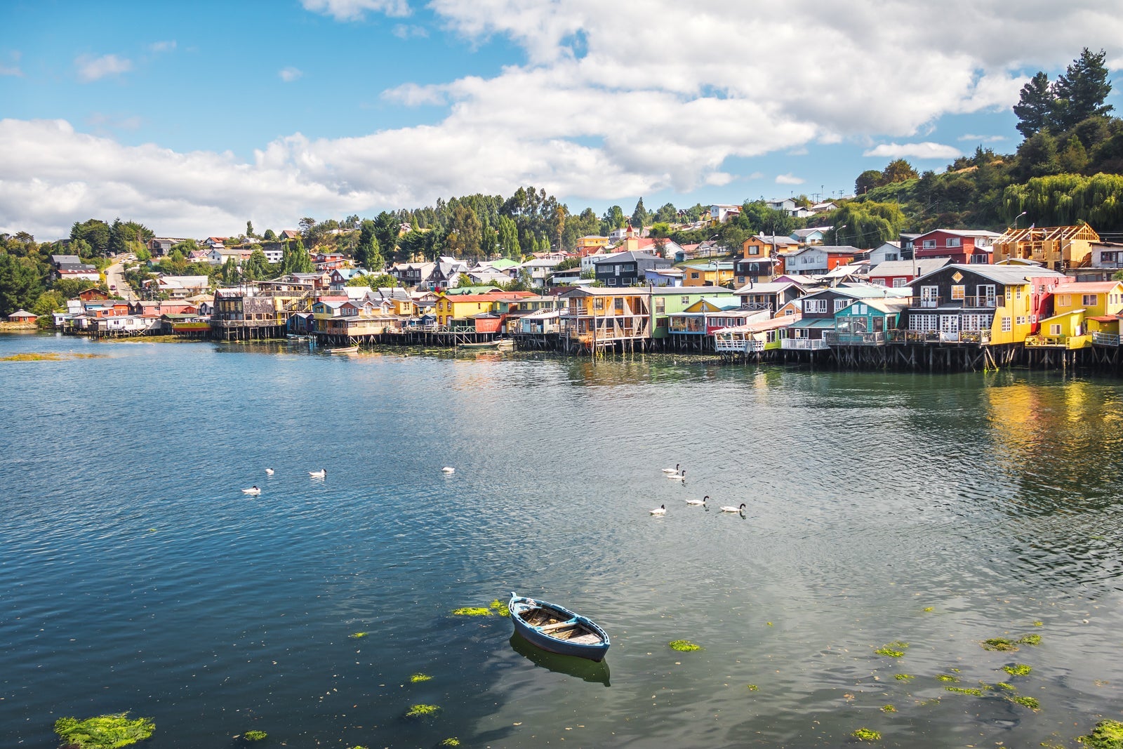 Fly to Puerto Montt from Santiago then take a 35-minute ferry to Chacao on Isla Grande. The best weather is between October and April, though dry January makes it the busiest month for visitors.