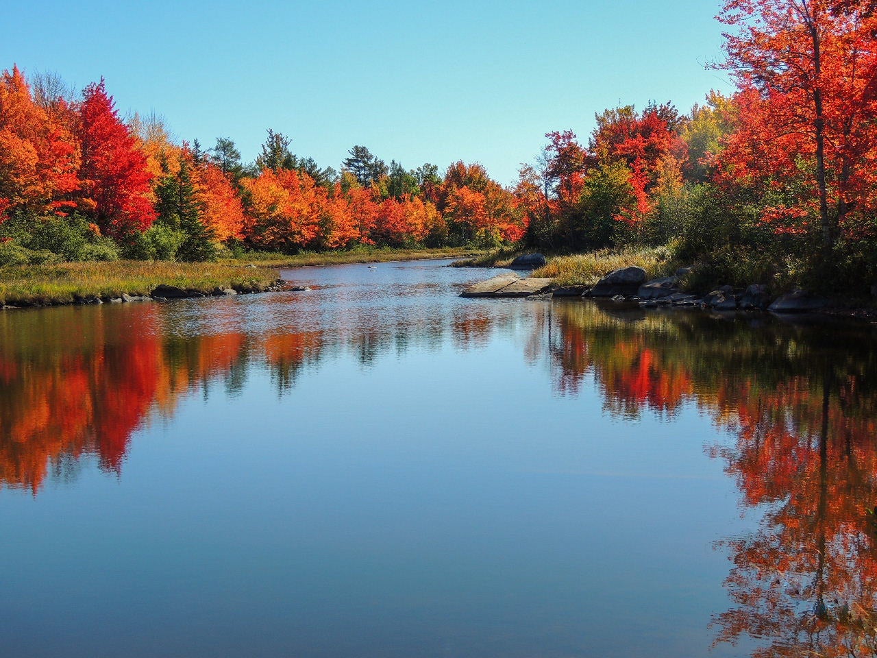 Maine River with Colorful Fall Foliage