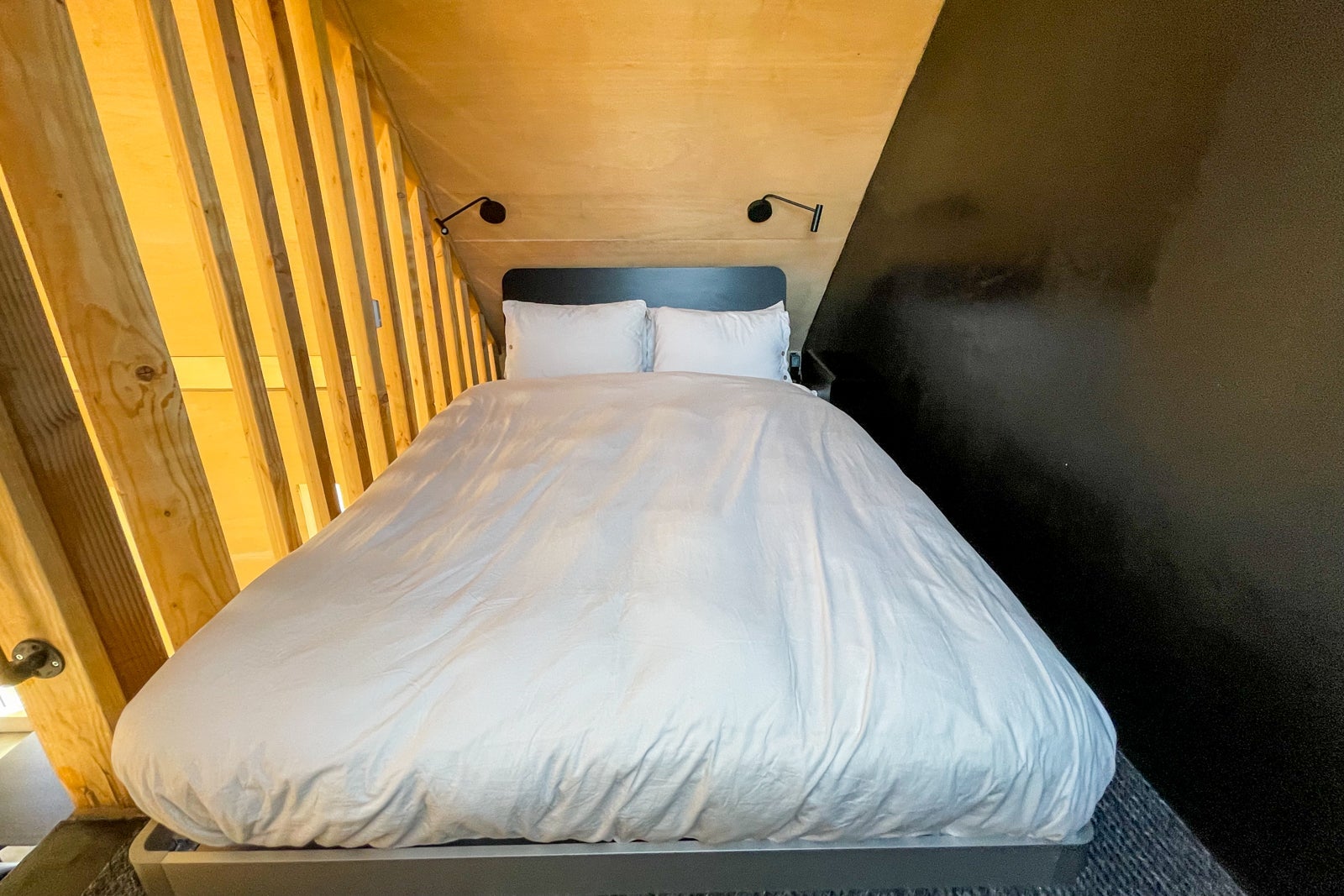 I checked out the cozy, lofted sleeping area above the living room, outfitted with a queen-size bed and reading lights. It's not designed to be the master bedroom or the star of the show, but I decided it made the most sense given the wind, which was picking up with increasing intensity.