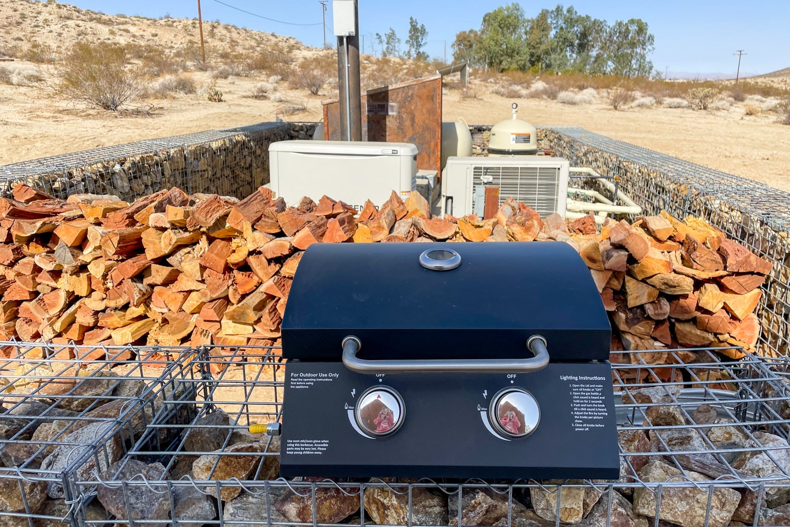 For the rest of the day, I tried using Folly Joshua Tree's outdoor amenities, including the cedar soaking tub and well-stocked fire pit. There's also a gas fire feature and a full barbecue area. Though they're perfect for enjoying warm desert nights, the wind made it simply too cold to stay out for long.