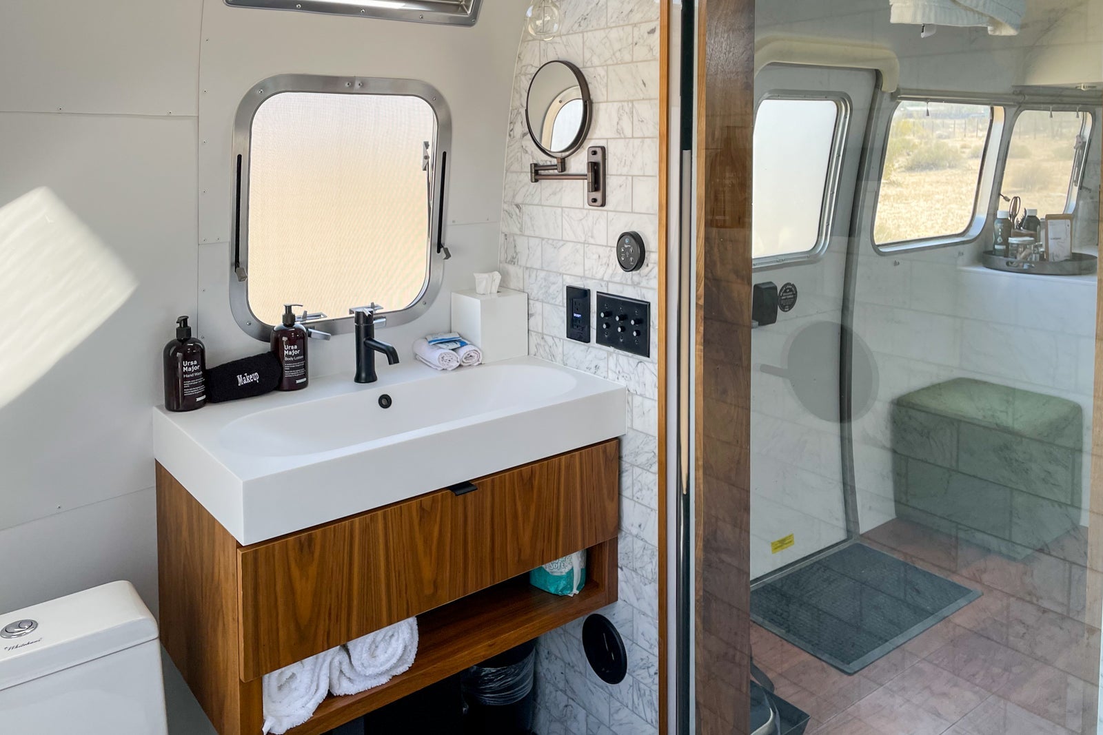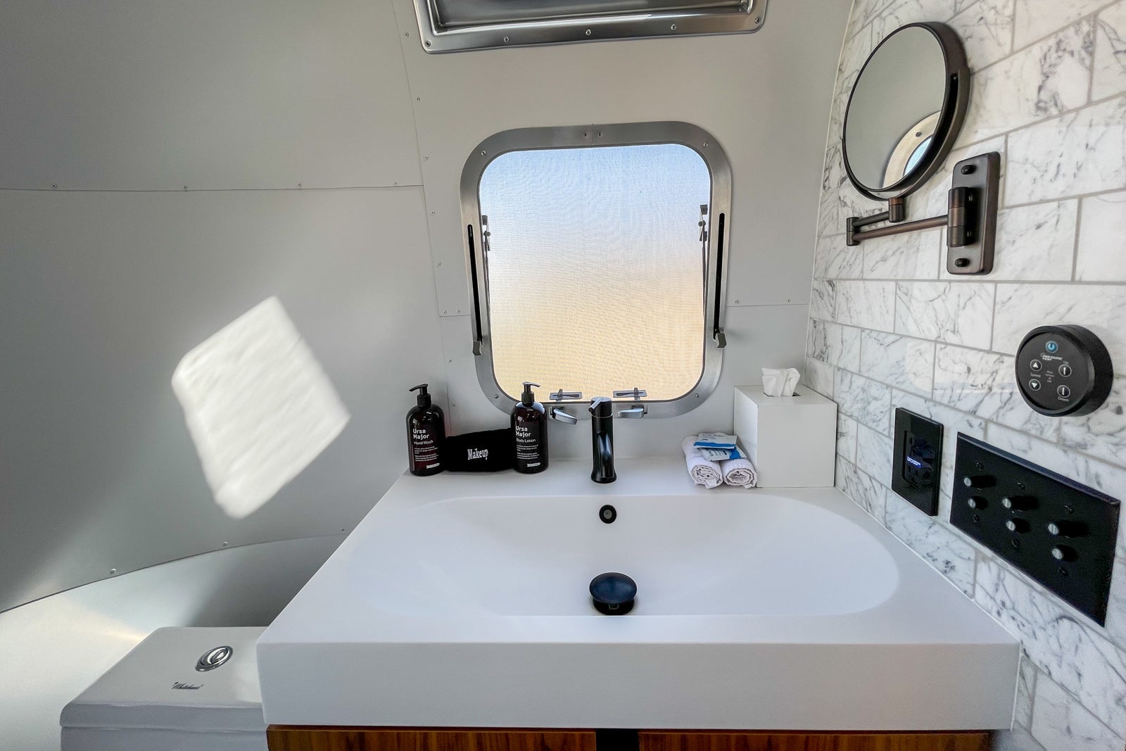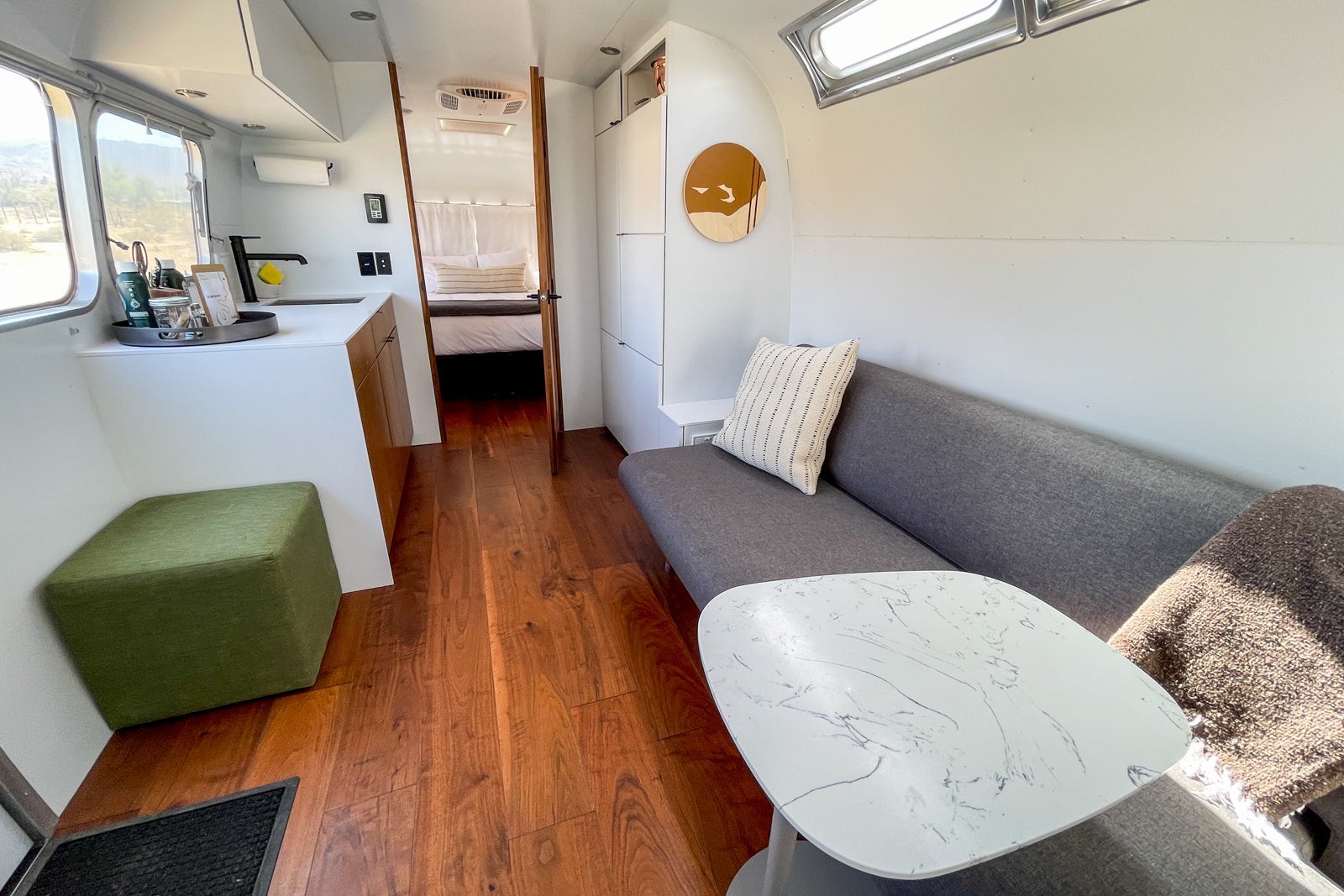 The 31-foot Airstream was a masterpiece of space-saving design hacks. There was a living area with a small coffee table and a futon, a kitchenette with all the fixings for French press coffee in the morning, a full bathroom stocked with Ursa Major toiletries and a queen-size bed.