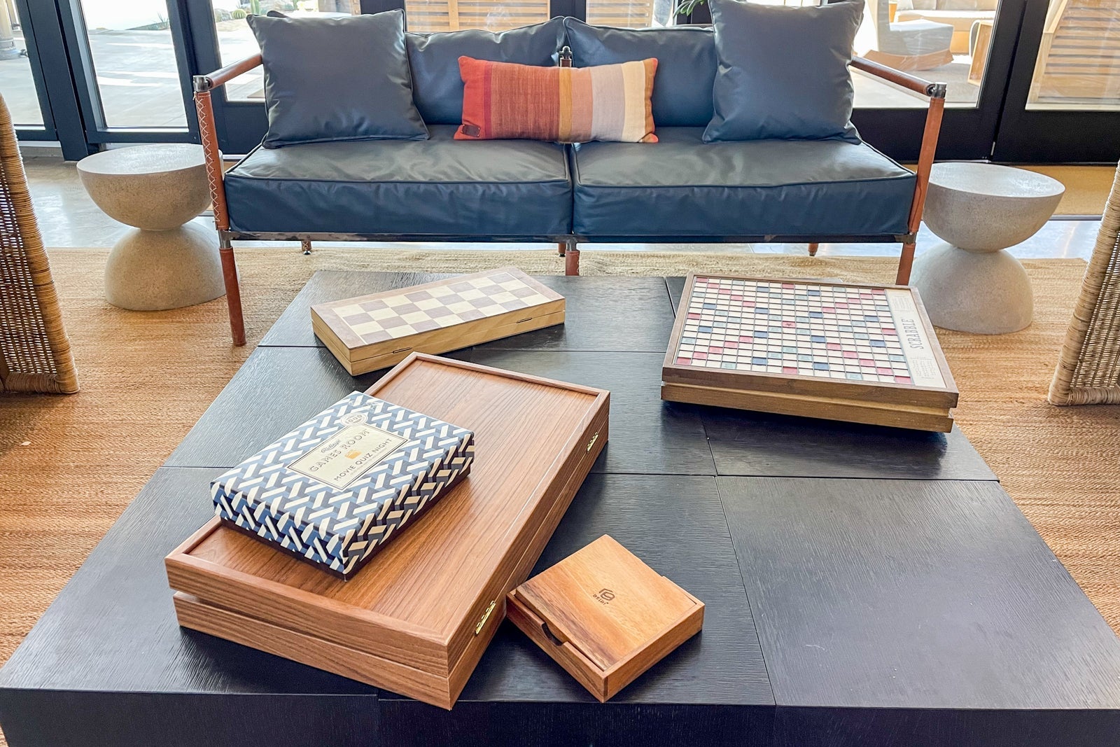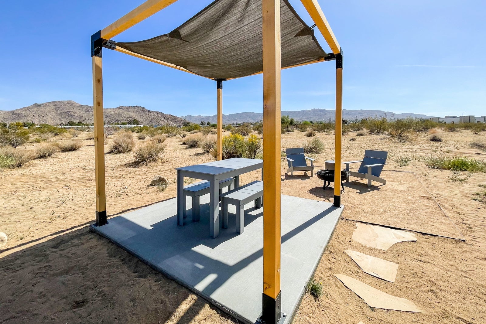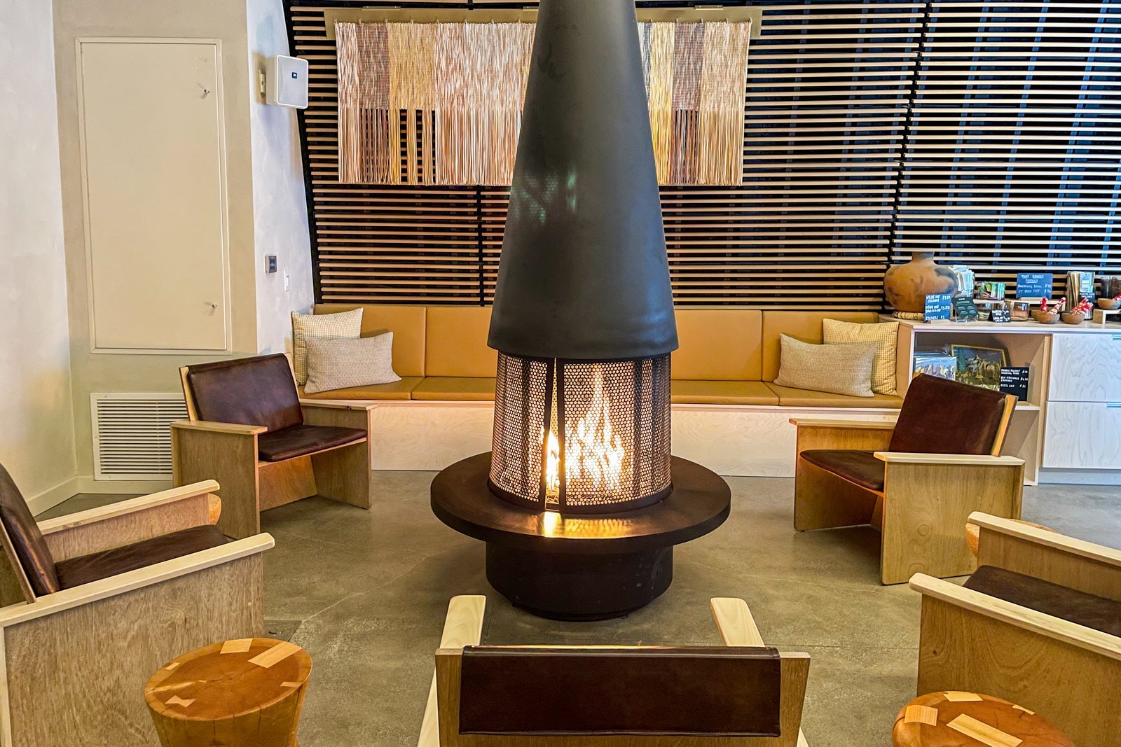 The Joshua Tree property featured a swimming pool that, sadly, wasn't yet open. It also offered a midcentury "clubhouse" gathering area near the check-in entrance, with classic board games like checkers and Scrabble. Vintage-style Priority bikes were available, and more than a dozen chairs framed a giant fire pit and a cornhole court.