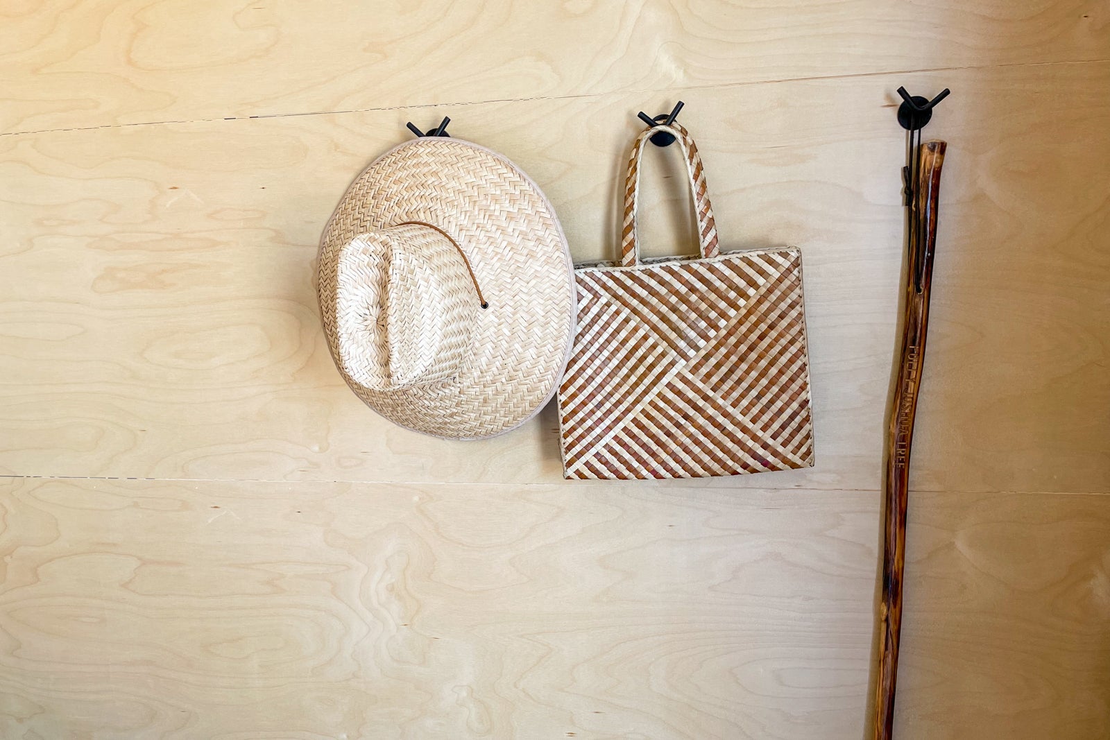 So I descended and opened the sliding glass door to the indoor bedroom beneath. With overlapping woven rugs, a sun hat and a walking stick, the space was all chic, minimalist desert vibes. This, I thought, was where I'd sleep after nightfall.