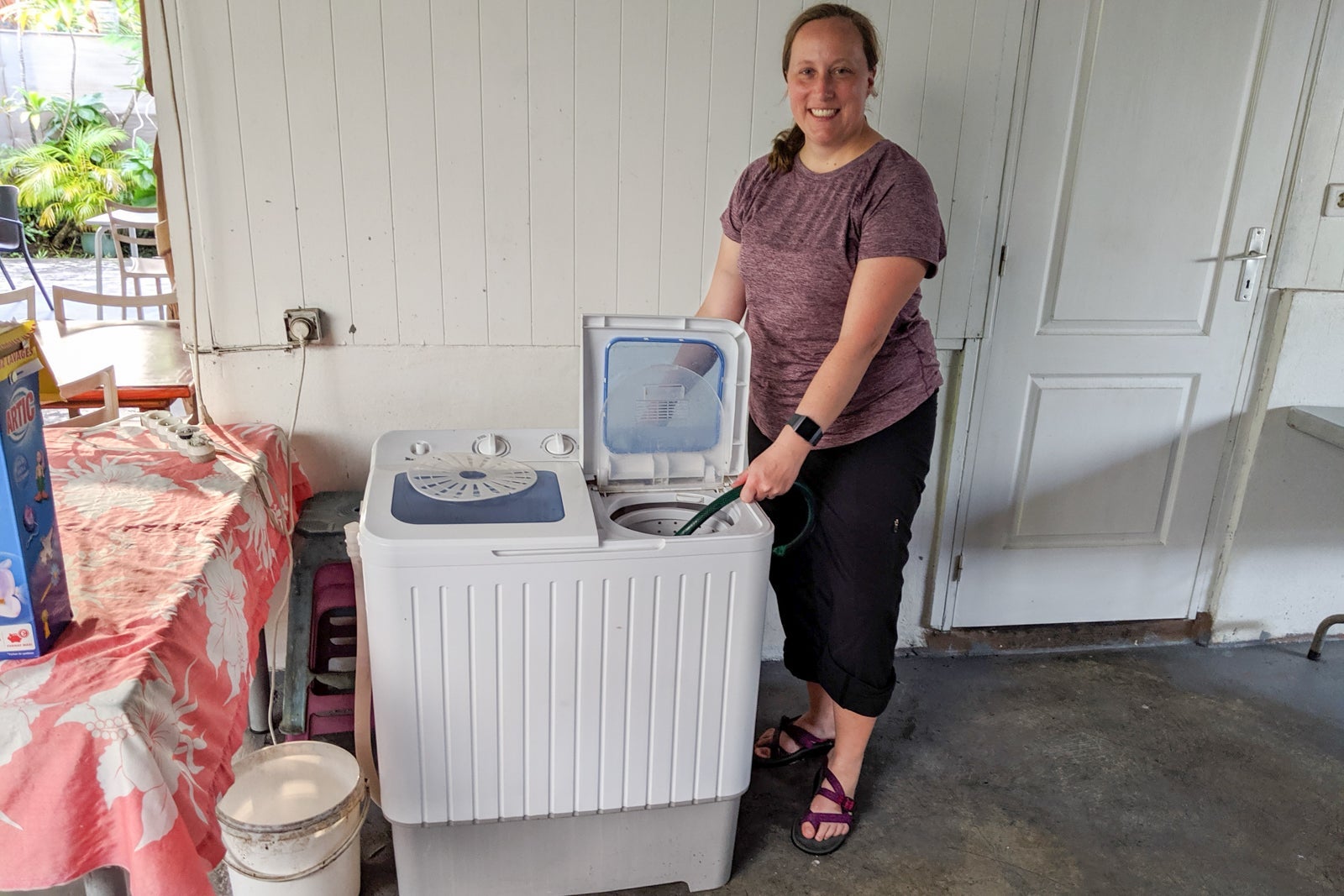 Also, note that the machines may not have instructions or settings in English. In this case, you can use Google Translate's camera function to translate in real-time. The washer may also not function like you'd normally expect. For example, I'd never heard of a manual washing machine -- much less used one -- before our Airbnb host in French Polynesia left one out for us.
