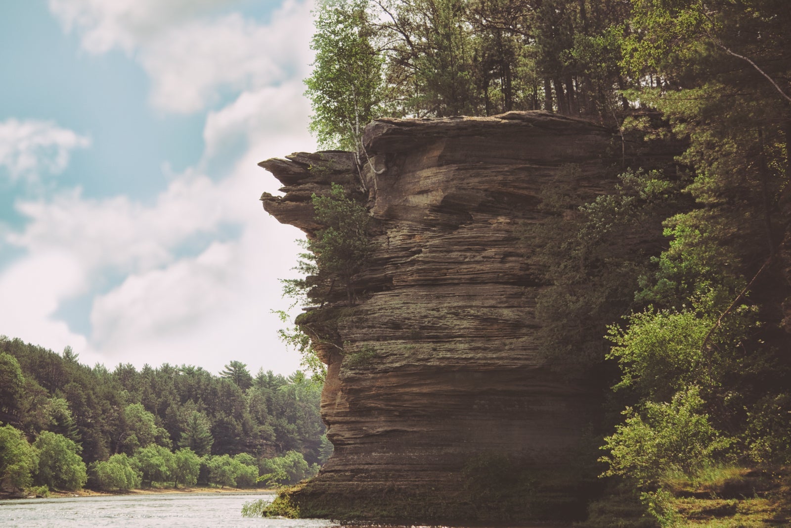 The tall bluffs at Starved Rock are a stunning sight in a relatively flat state and a destination for hikers looking for terrain to scale. The park's topography was formed thousands of years ago when melting glaciers eroded everything in the area except the resistant St. Peter sandstone. Today, steep sandstone walls create a series of 18 canyons that, after heavy rainfall, act as natural waterfalls.