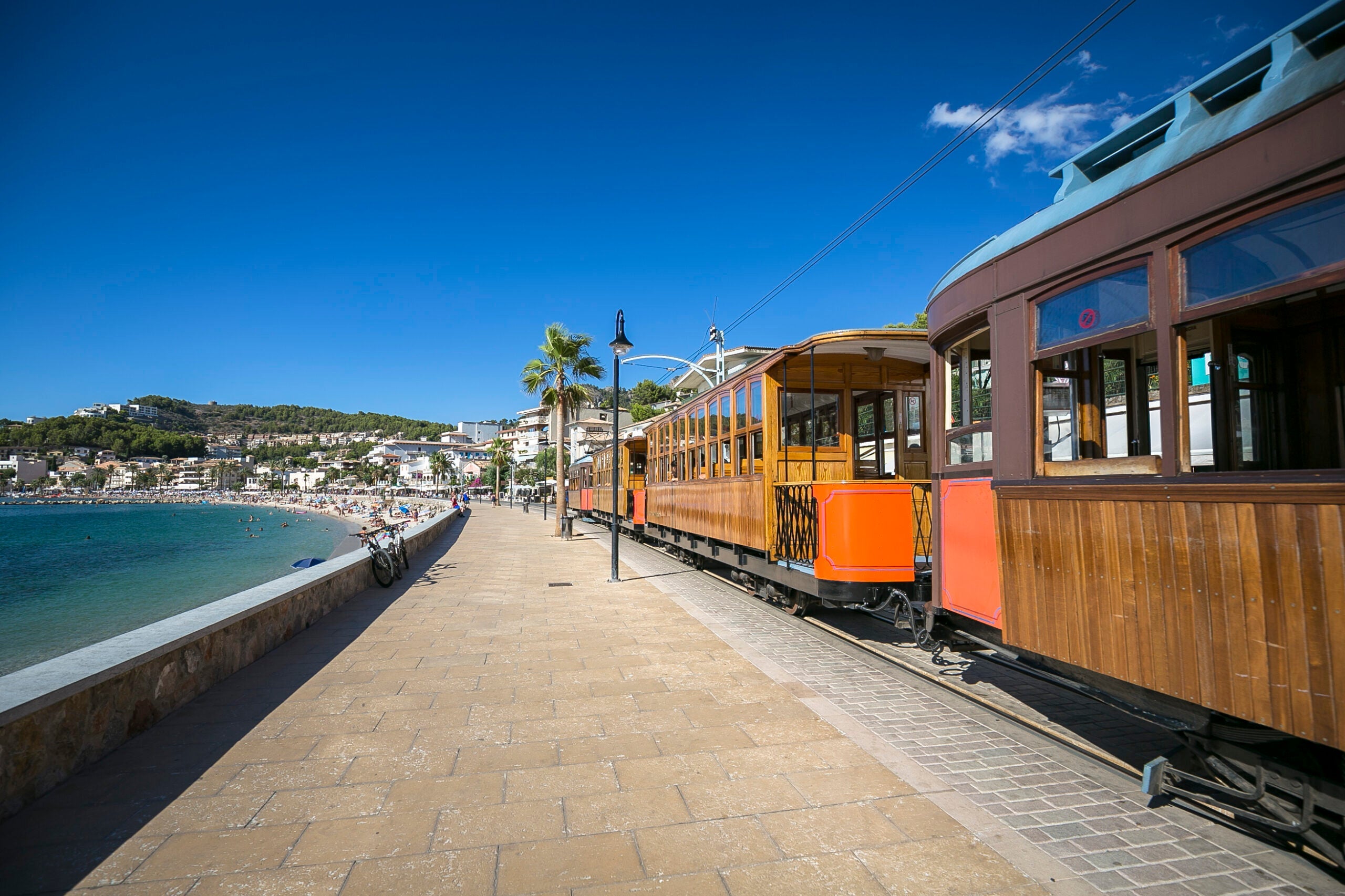 The village of Sóller is a charming destination regardless of the transportation method, with a bustling town square and great hiking in the surrounding area.