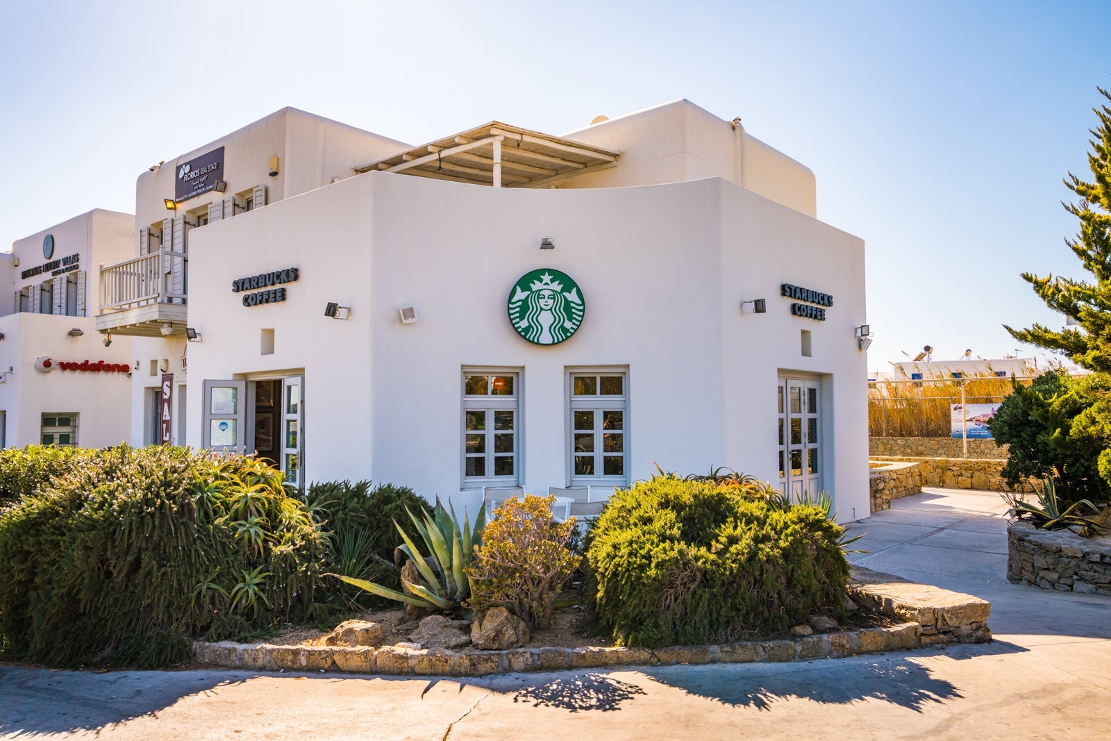 A Starbucks in Mykonos might look appealing, but a quality cappuccino freddo in Greece should never cost more than around $2. (Photo via Shutterstock)