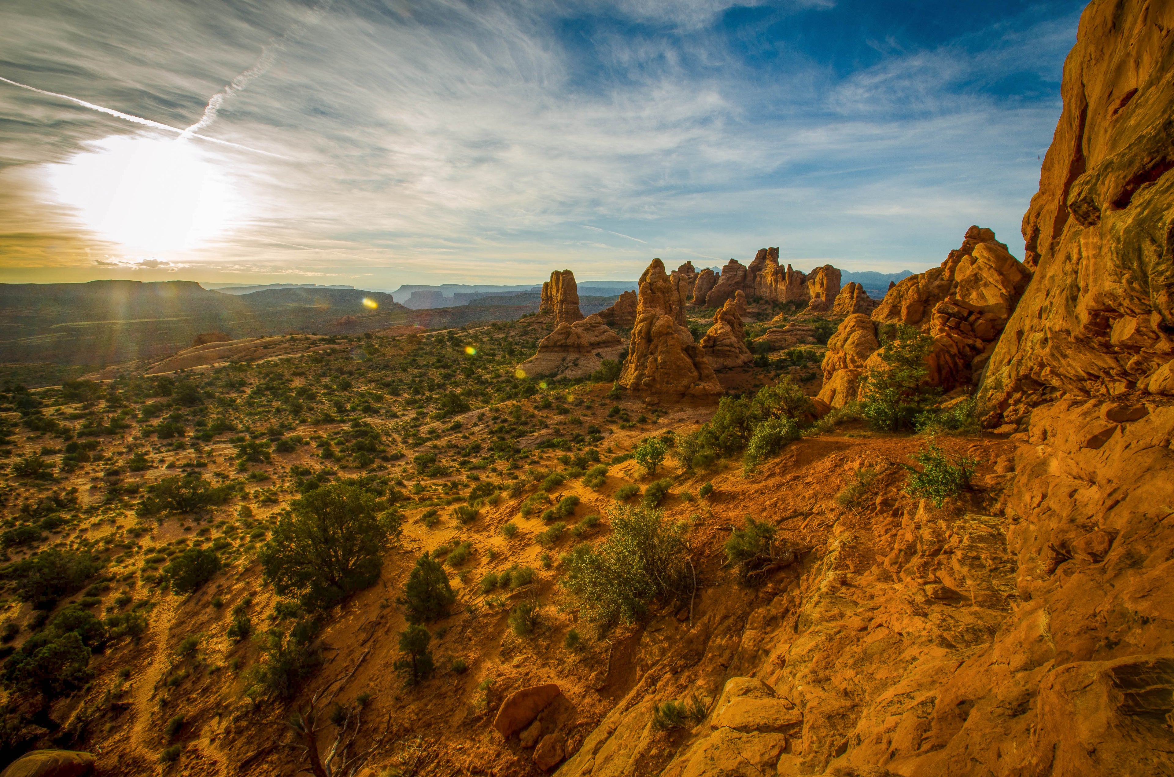 The next destination — Utah's Arches and Canyonlands National Parks — are five and a half hours southwest. During the drive, you will see the landscape morph from snow-capped peaks to red sandstone cliffs. Distance: 400 miles.
