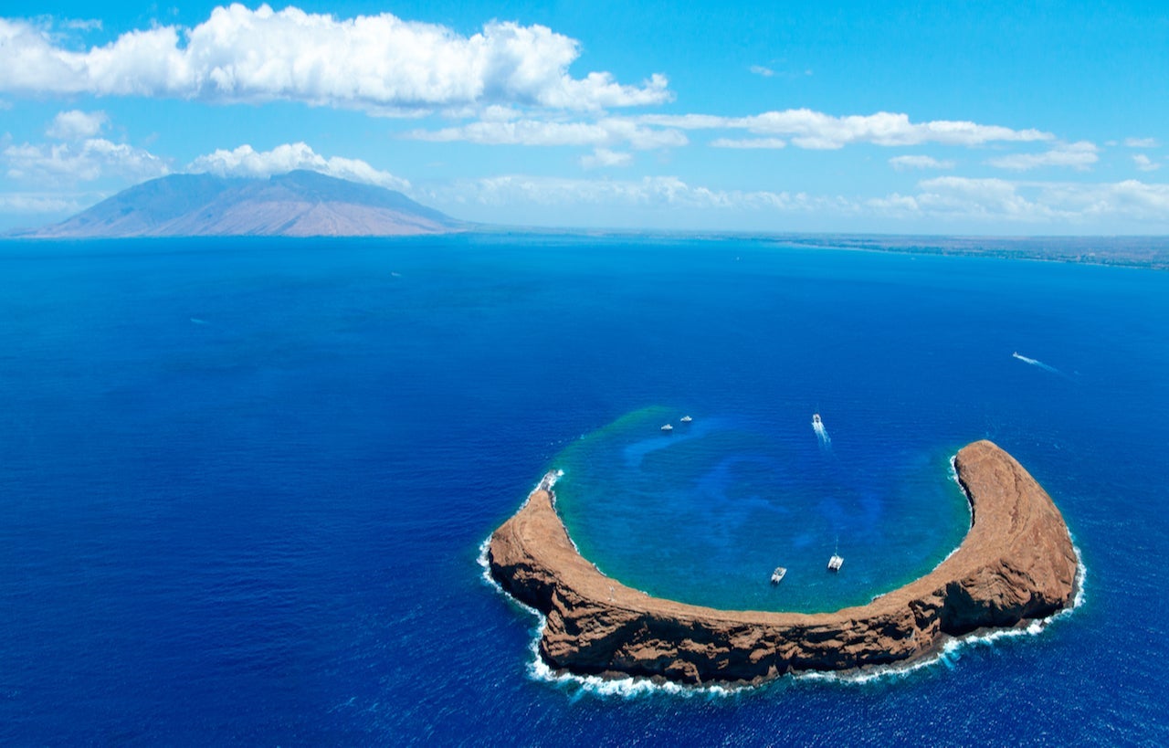 This tiny, crescent-shaped islet known as Molokini is a volcanic crater home to a 150-foot deep reef that boasts more than 250 fish species. Ideal for snorkeling and diving, the crater's crescent shape provides protection from powerful winds and swells. Molokini is also considered a sanctuary for wildlife such as birds, reef sharks and humpback whales. Access to the crater is limited to travelers with permits, so plan to sign up for a tour if you'd like to swim, snorkel or dive there.