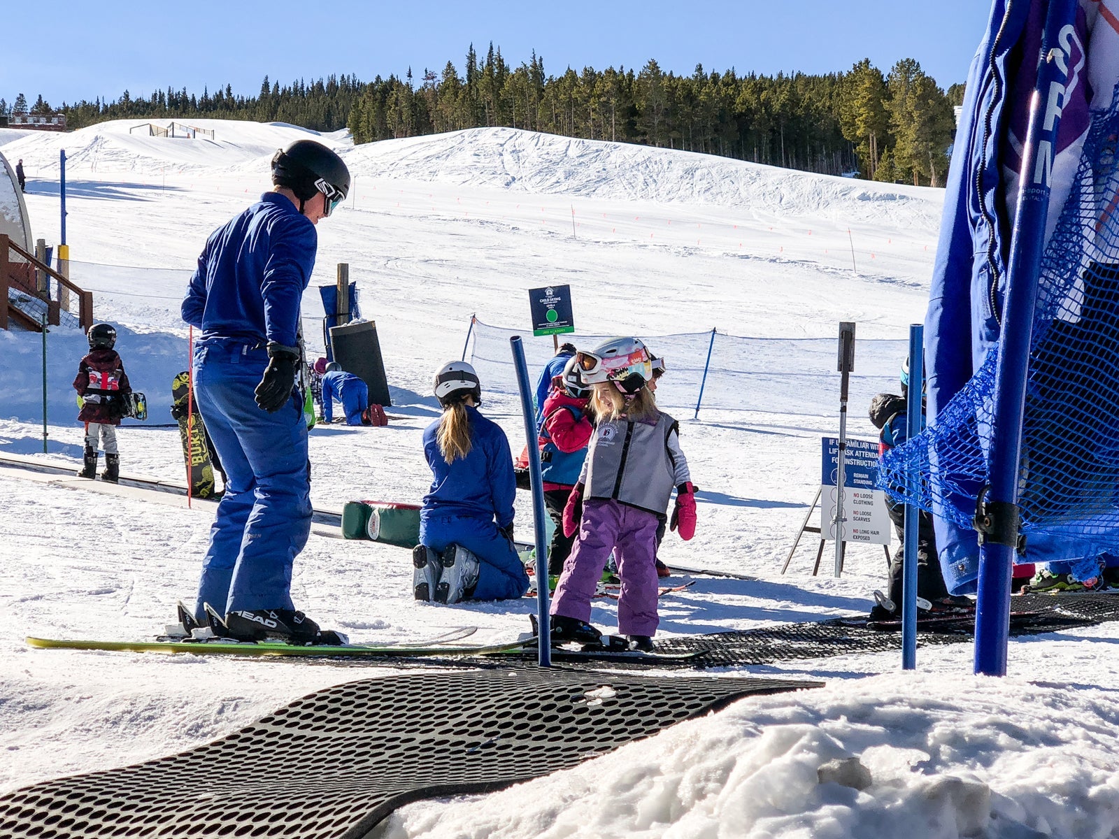 Most mountains offer either 1-on-1 private lessons or family lessons that keep the family together. A few years ago, we did a private family lesson option at Breckenridge in Colorado to keep the three youngest cousins (ages 3 to 6 years) together for a half-day of learning. This allowed them to be less anxious about ski school since they were all together, and it ended at noon, so they could then take an afternoon nap. They got many more practice runs in than they would have at ski school since the group was small.