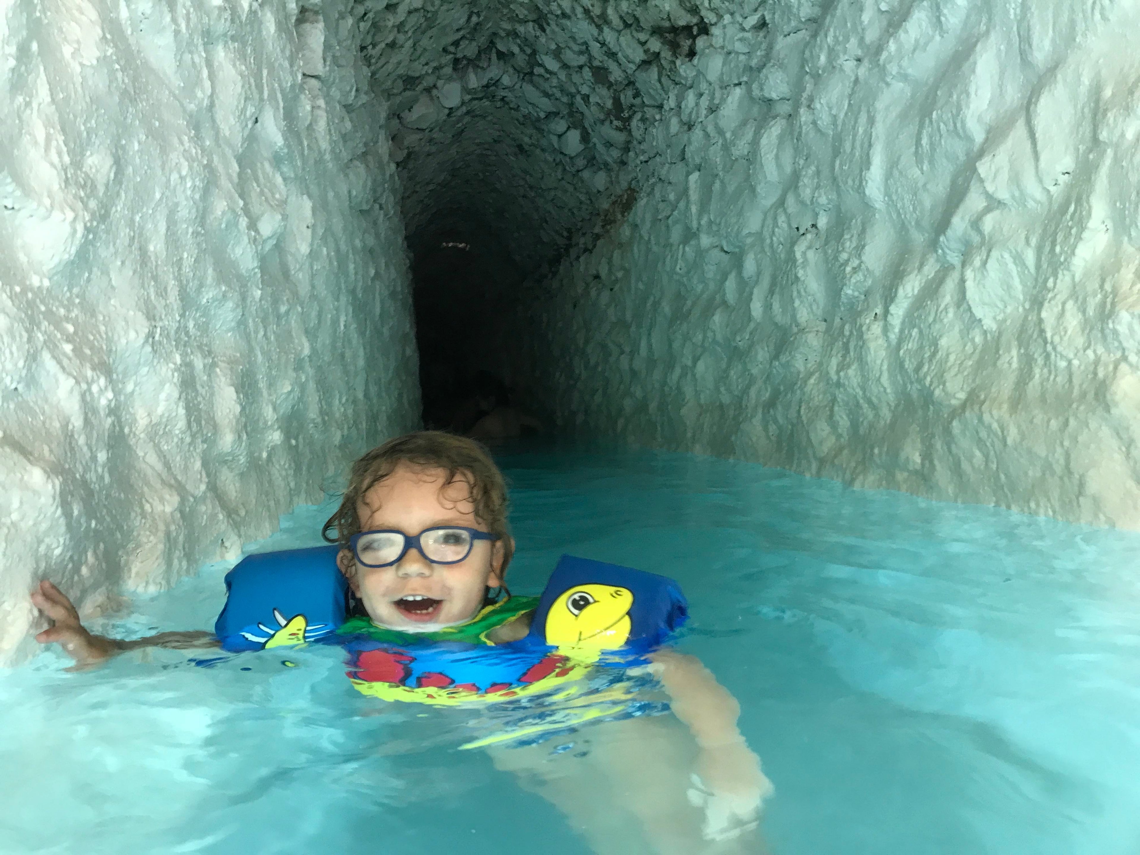 There are several pools in which to soak in waters of varying temperatures, a neat grotto you access through a short tunnel partially filled with water (my son loved this, and we did it on repeat) and large, open grassy areas where you can relax and picnic. The on-site restaurant is affordably priced and sells things like chilaquiles and pancakes. Admission includes lockers but you'll want to bring your own towels. Admission is about $12 per person and free for kids under 3.