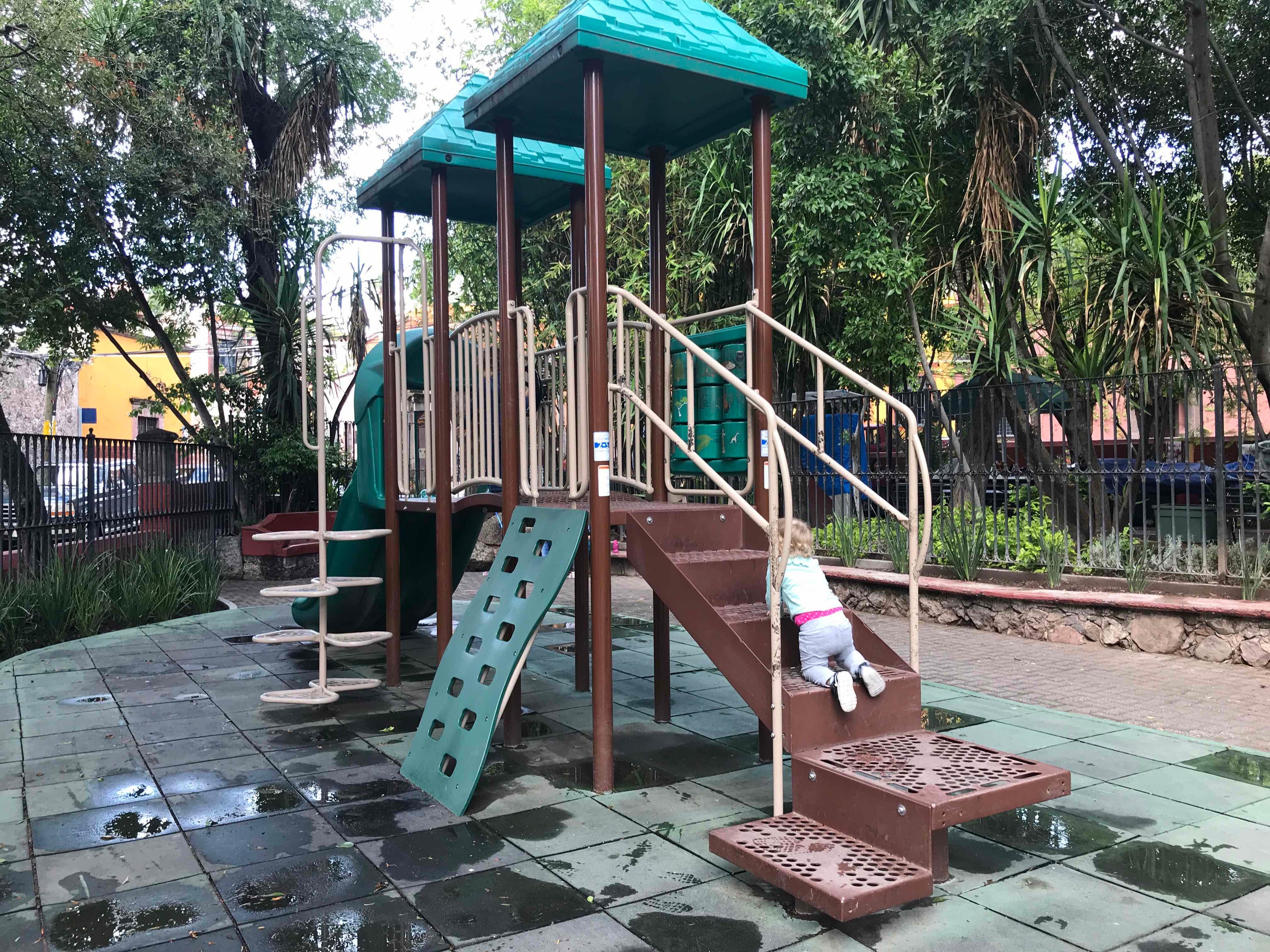 A few blocks stroll downhill (on narrow sidewalks and stone roads) from the main square brings you to the best playground in town, set within San Miguel's main city park. Tree-shaded, paved paths lead to gurgling fountains and quiet squares within the park with vendors selling crafts and snacks. Kids will hone in quickly on the playground, right at the park's northern entrance, which has an area for older kids and one geared more toward toddlers. It also has climbing contraptions, swings and slides. I noticed that local playgroups tended to meet here on weekend mornings, if you're looking to meet some expat and Mexican parents in a convivial setting.
