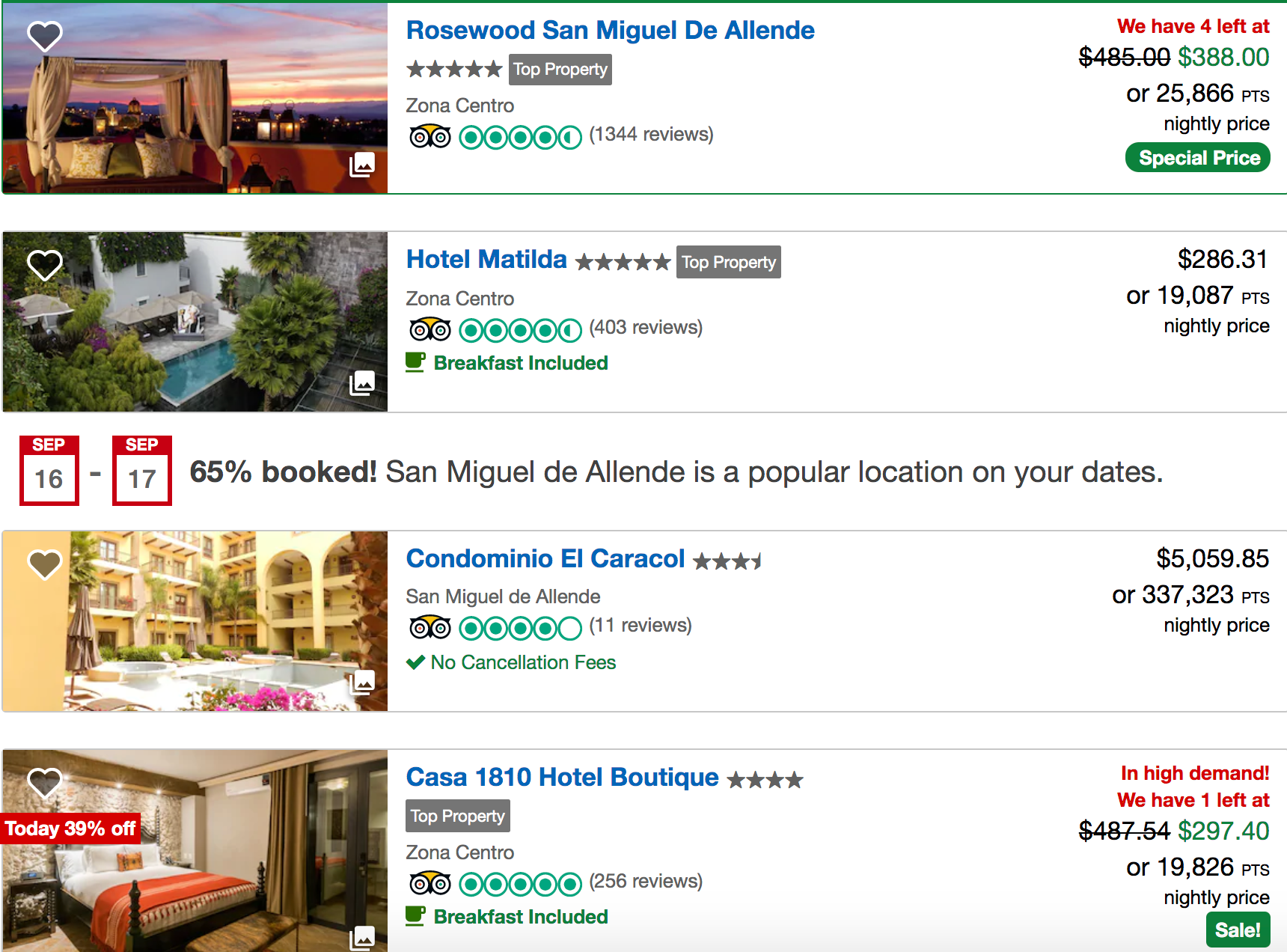 Hotels run the price gamut in San Miguel, from small family-run posadas to lavish luxury resorts. Mexican hospitality is a theme most anywhere. This is a great place to charge your stay to a card that has a travel purchase "eraser" feature, like the Capital One Venture Rewards Credit Card. Or log in to your Chase Ultimate Rewards account, click to Chase's travel portal and see your options for booking a San Miguel de Allende hotel with your UR points.