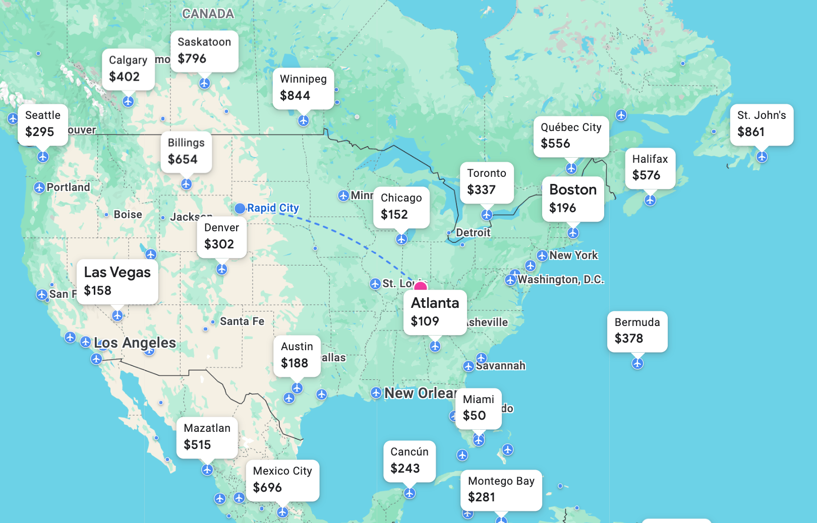 You'll see a world map detailing flight prices to several major cities. You can scroll through the map and zoom in on different areas to help you focus on your perfectly priced destination. If your dates are flexible, you can also click on the date grid or price graph to see overall trends for pricing to your chosen vacation spot.