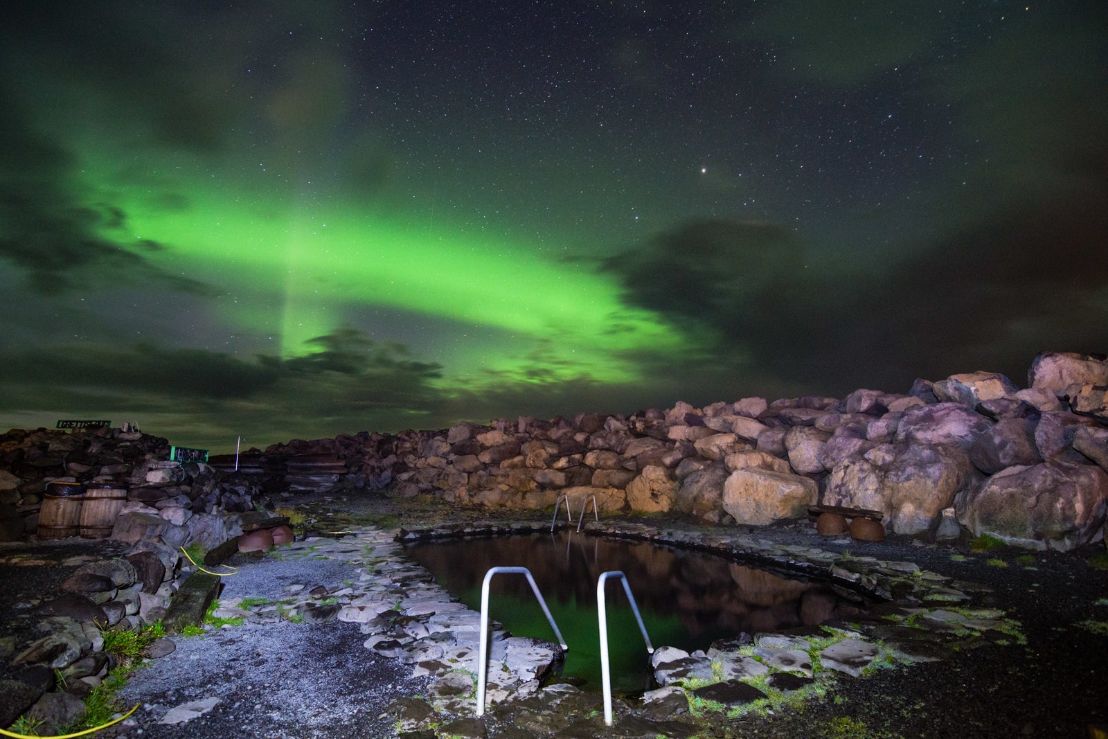 You'll find this secluded hot spring near Fludir's Secret Lagoon, but unfortunately, the secret is quickly getting out. If you want to enjoy it when there aren't other tourists (the area has been littered with telltale signs of inconsiderate bathers) go early, and take out whatever you bring. Hrunalaug is not particularly easy to find, so prepare to do a bit of searching. It's small, accommodating only a handful of people. You'll know you're there when you find a small, grass-covered structure. The pool is located directly next to it.