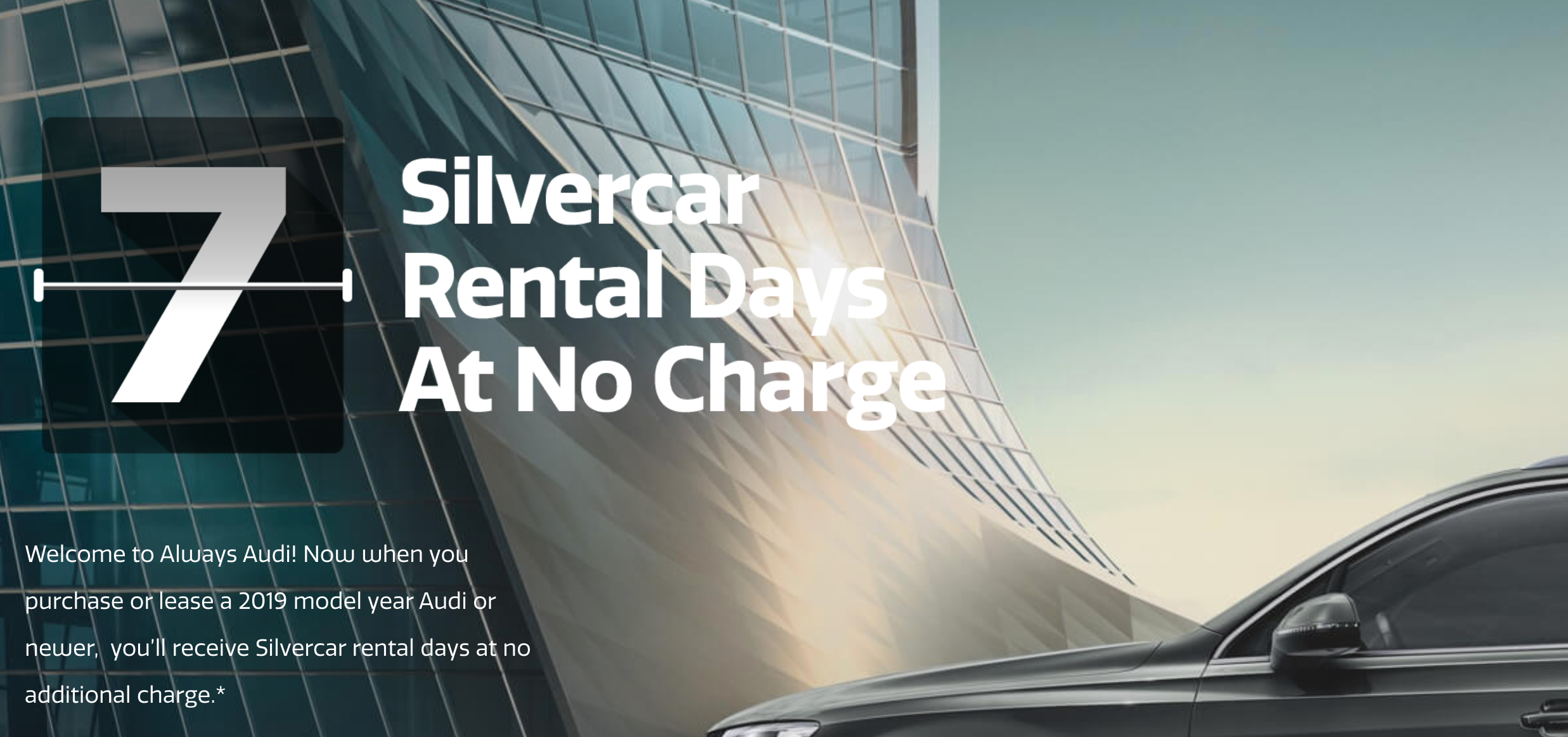 If you own an Audi, you can score additional Silvercar deals. Through Dec. 31, 2020, Audi owners get one free day on each two-day rental and two free days on four-day rentals. If you're in the market for an Audi, those purchases and leases on 2019 and newer models come with seven free Silvercar rental days.