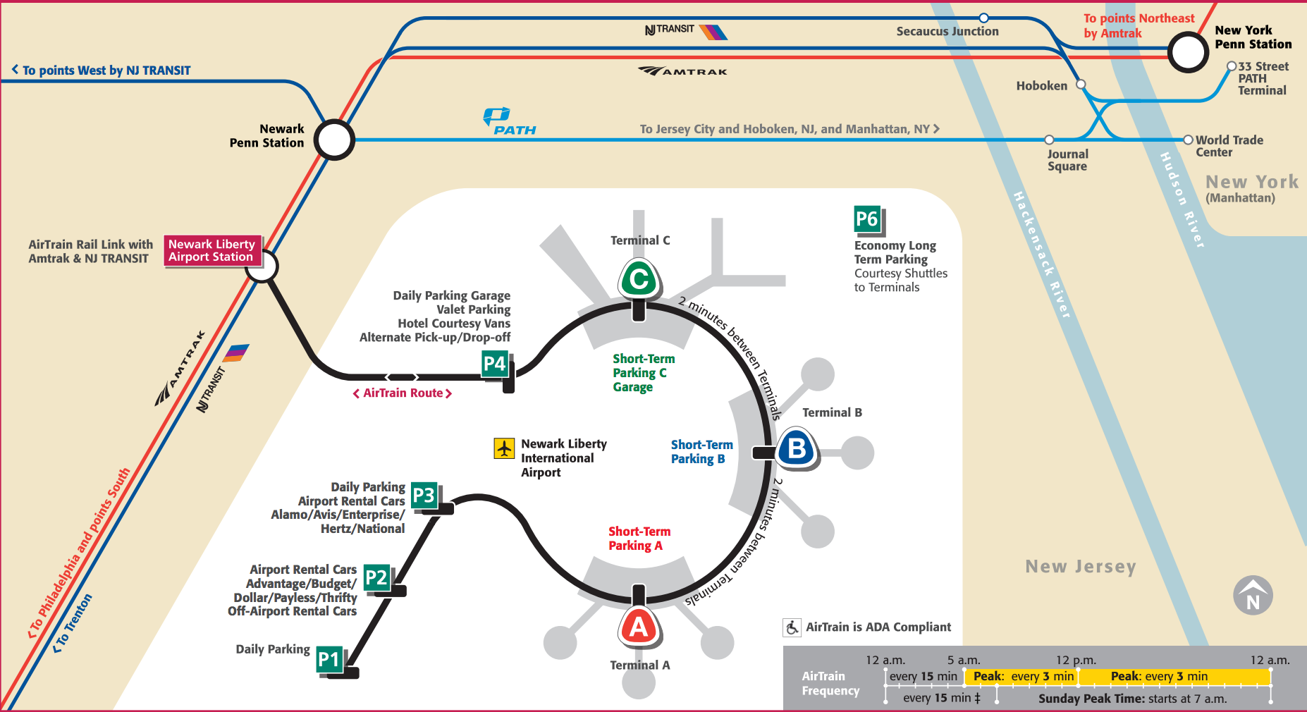 This is where AirTrain comes into play. AirTrain is a rail line that transports passengers between all three Newark Airport terminals, parking garages, rental car facilities and Newark Liberty Airport Station. From Newark Liberty Airport Station you can take a NJ Transit train right into New York Penn Station.