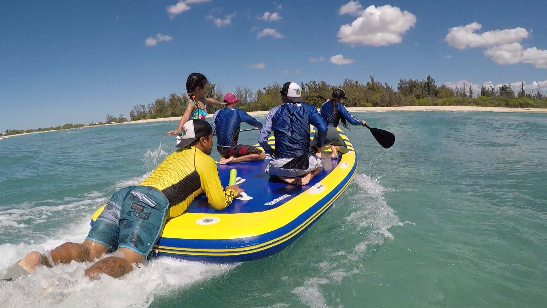We started our first day at Eisenhower Beach, where Let's Surf Hawaii introduced us to the brand-new sport of SUPsquatch. Never heard of it? Neither had we, but we're now telling everyone we know about this kid-friendly group surfing sport. A cross between stand-up paddling and surfing, SUPsquatch uses a giant raft-sized inflatable board that can accommodate up to six people. Led by experienced guides who had us laughing from the first five minutes, we piled onto the board and headed out beyond the surf, positioning ourselves to be ready for the next wave. At the first shout of "paddle now!" we took an exhilarating ride, thrilled to find that even beginners felt stable enough to stand up for the first time. (SUPsquatch is $89 per person with a minimum of two or $109 for a private lesson, and is suitable for ages 6 and up.)