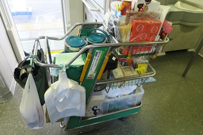 If you didn't bring any along with you, there were a variety of food and beverage options available on Shinkansen trains from a cart attendants pushed through the aisle. Drinks were quite reasonable, too, only costing about $1 to $3 for water, tea, Coke, beer or Sake, while food options weren't fresh but were also reasonably priced — snacks like potato sticks, chocolate pretzels, dried salmon and ice cream were all available for under $3. There's no restaurant/cafe car like you might find on some European and American trains. Note that non-Shinkansen trains didn't have any food or beverage options at all.