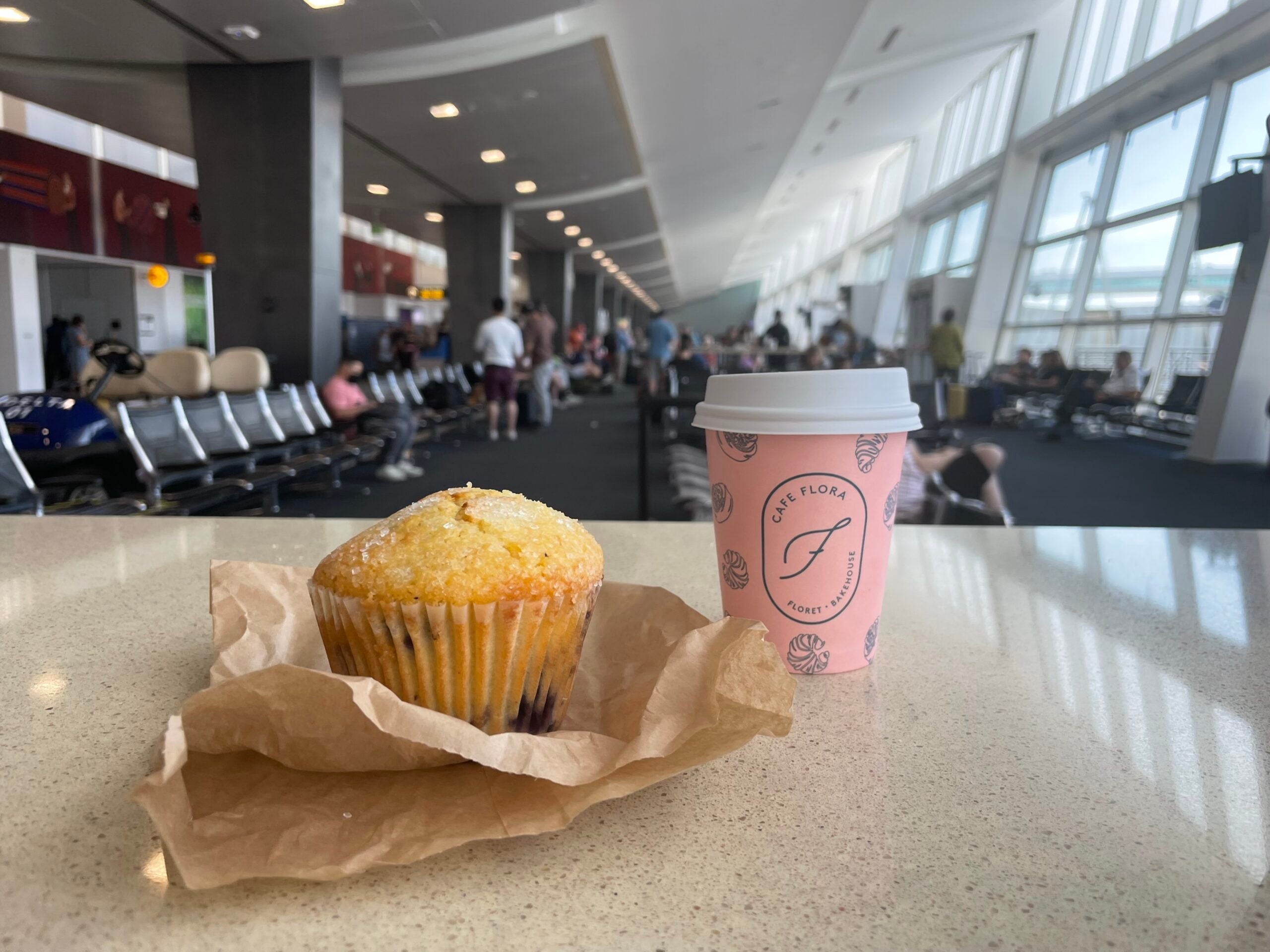This was by far the cutest cafe I visited, with neon signs, plants and a relaxing dining area that made me forget I was in an airport. Floret actually serves coffee beans roasted by Stumptown, a Portland, Oregon-based roaster. (If you go to Portland International Airport, you're sure to find Stumptown coffee.) I had to go with Floret's floral theme, so I tried the lavender fields latte — while it provided a caffeine boost, the coffee didn't taste quite as fresh as at the other cafes I'd tried. But it was still far above most insipid airport coffee choices, and its cute aesthetic compensated for the slight bitterness.