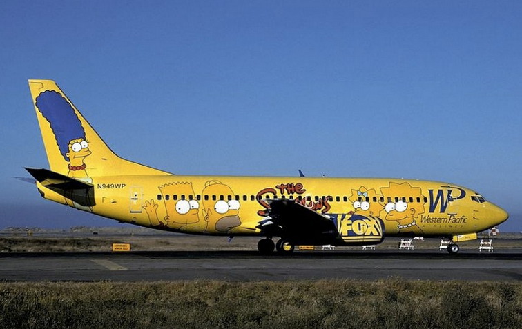 Western Pacific Airlines sounds like one of those made-up carriers you see in movies, but it actually once existed, marketing itself as a low-cost and fun way to fly. WestPac made a big splash in the industry by renting out the entire exterior of its planes as flying billboards, usually for casinos and hotels, but most notably for the TV show The Simpsons.