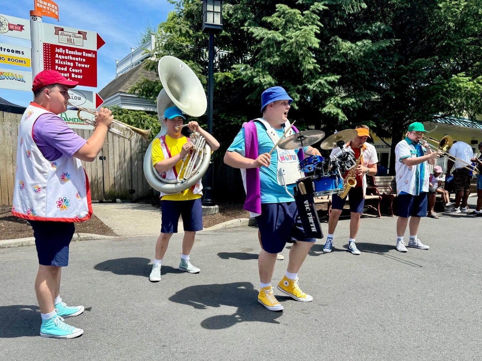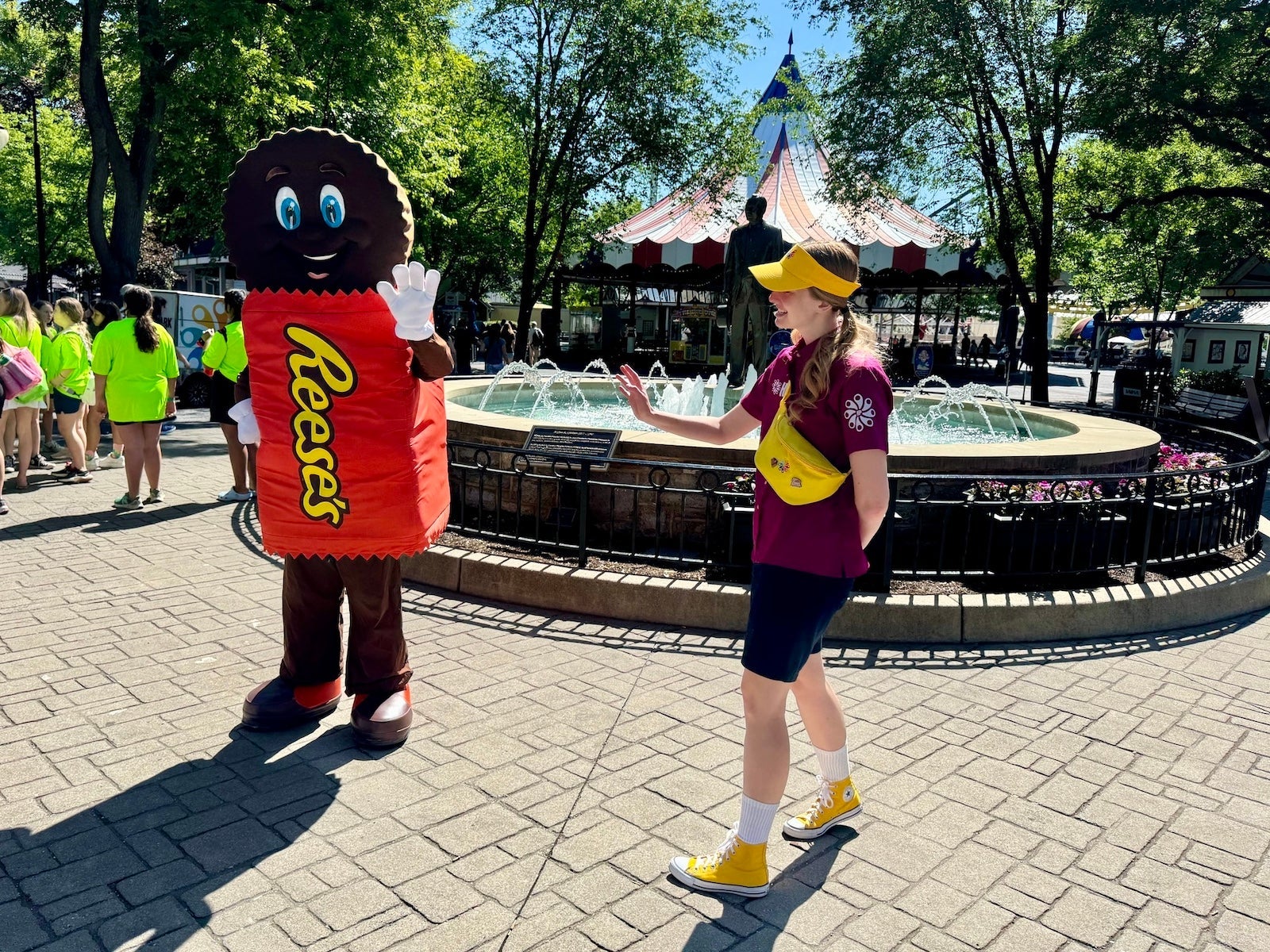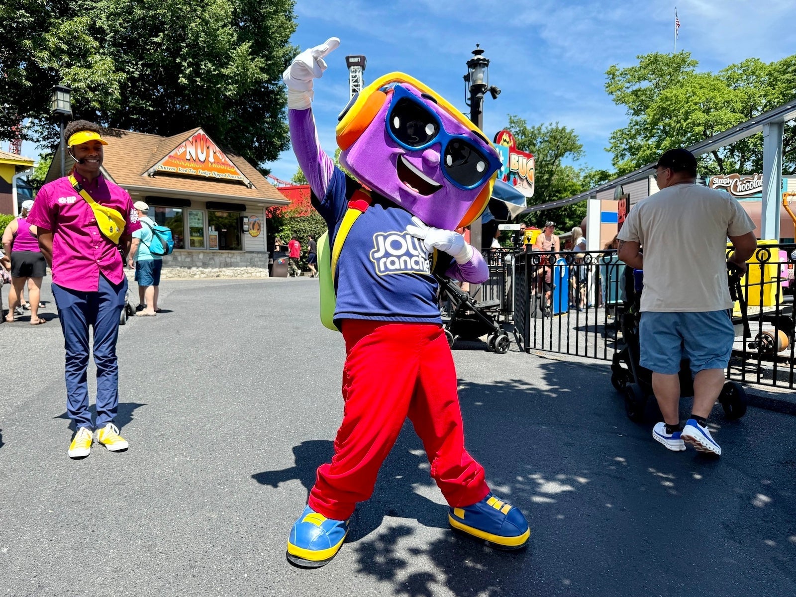 Hersheypark only has a few entertainment options throughout the day — namely a new music review in its Music Box theater and regular Hershey character meet and greets. The park's characters include Hershey Bar, Miss Kiss, Reese, JR, Twizzler and an occasional appearance from the minty-fresh Ice Breaker.