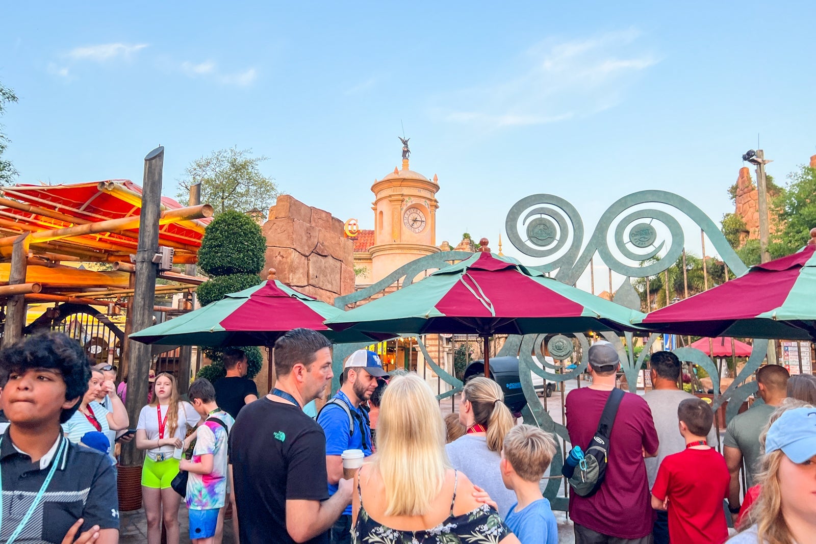 We awoke before sunrise to be as close to the front of the pack as possible and arrived at the gates of Islands of Adventure by 7:15 a.m. This meant we were toward the front of the crowd when the gates swung open at 7:45 a.m., thus officially beginning our testing day.