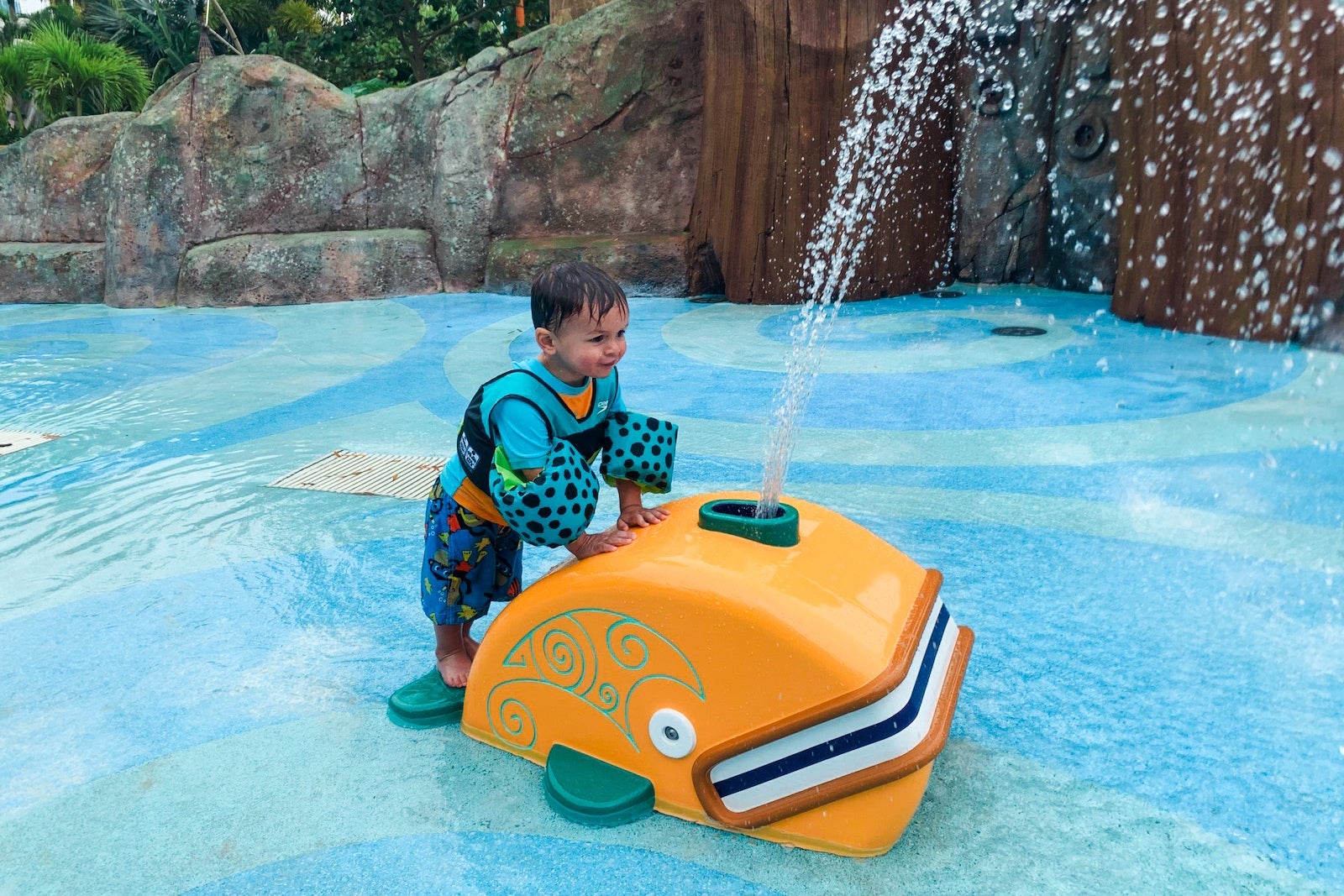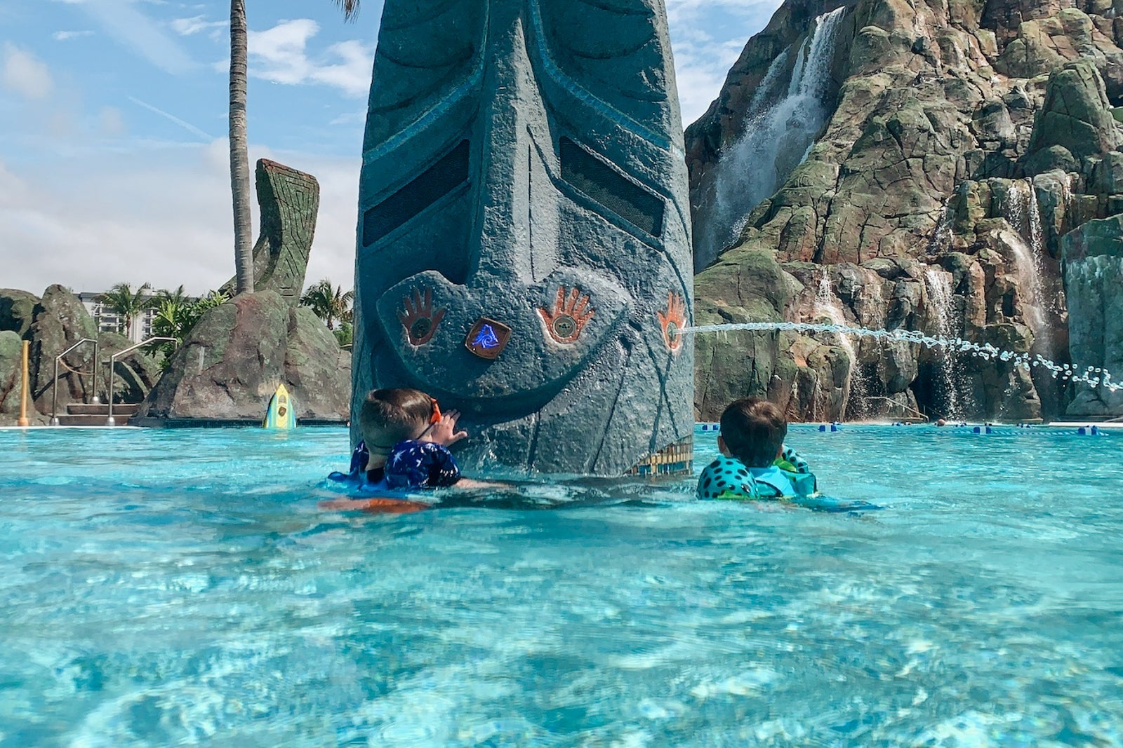 Runamukka Reef and Tot Tiki Reef are Volcano Bay's kid-friendly play areas. Tot Tiki Reef is designed for toddlers, and Runamukka Reef is meant for older kids. Both have pint-size waterslides and tons of interactive water spray features. There is seating for parents around both areas, but why sit down when you can join in on the fun?