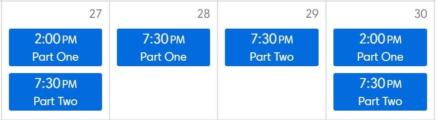 Availability on Ticketmaster.com for "Harry Potter And the Cursed Child" tickets for Thanksgiving week.