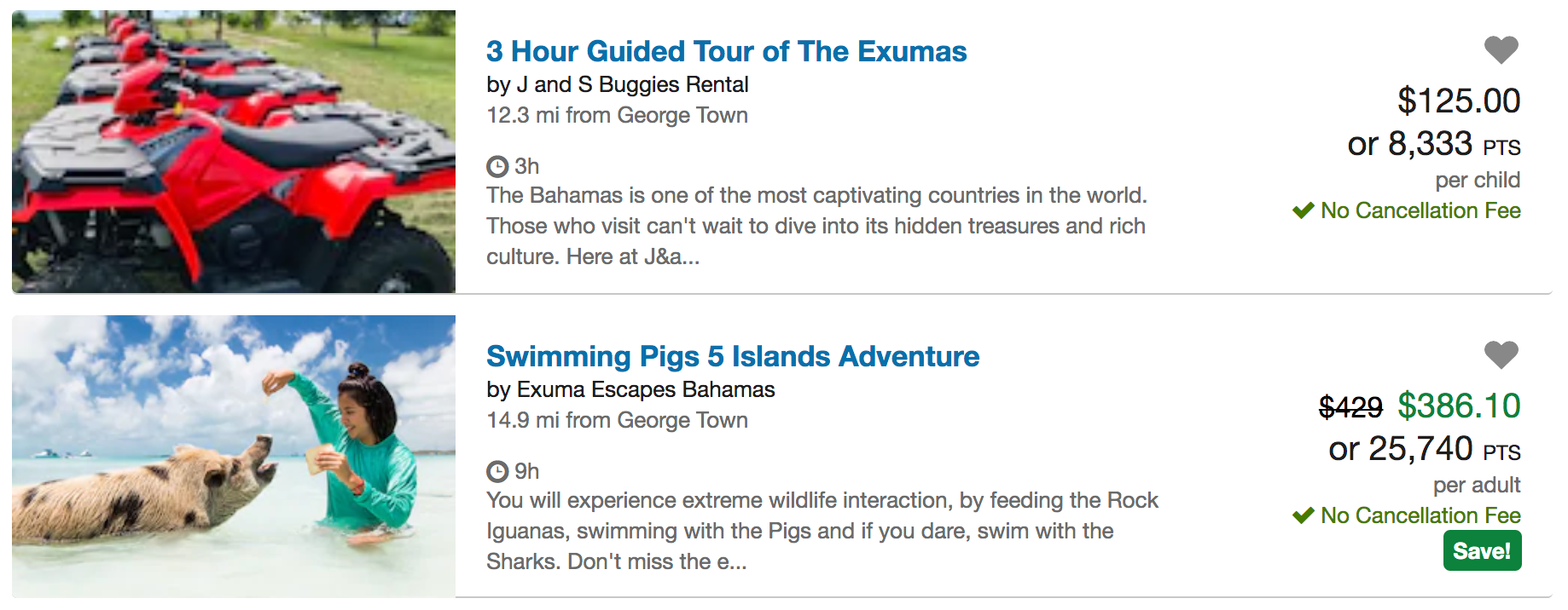 There are no points-friendly hotels in the Exumas. Your two options: 1) Pay cash for your hotel and "erase" some or all of the statement charges with a credit card like the Barclaycard Arrival Plus World Elite Mastercard, or 2) Book through a portal where you can either earn or use points (more on that in a minute).