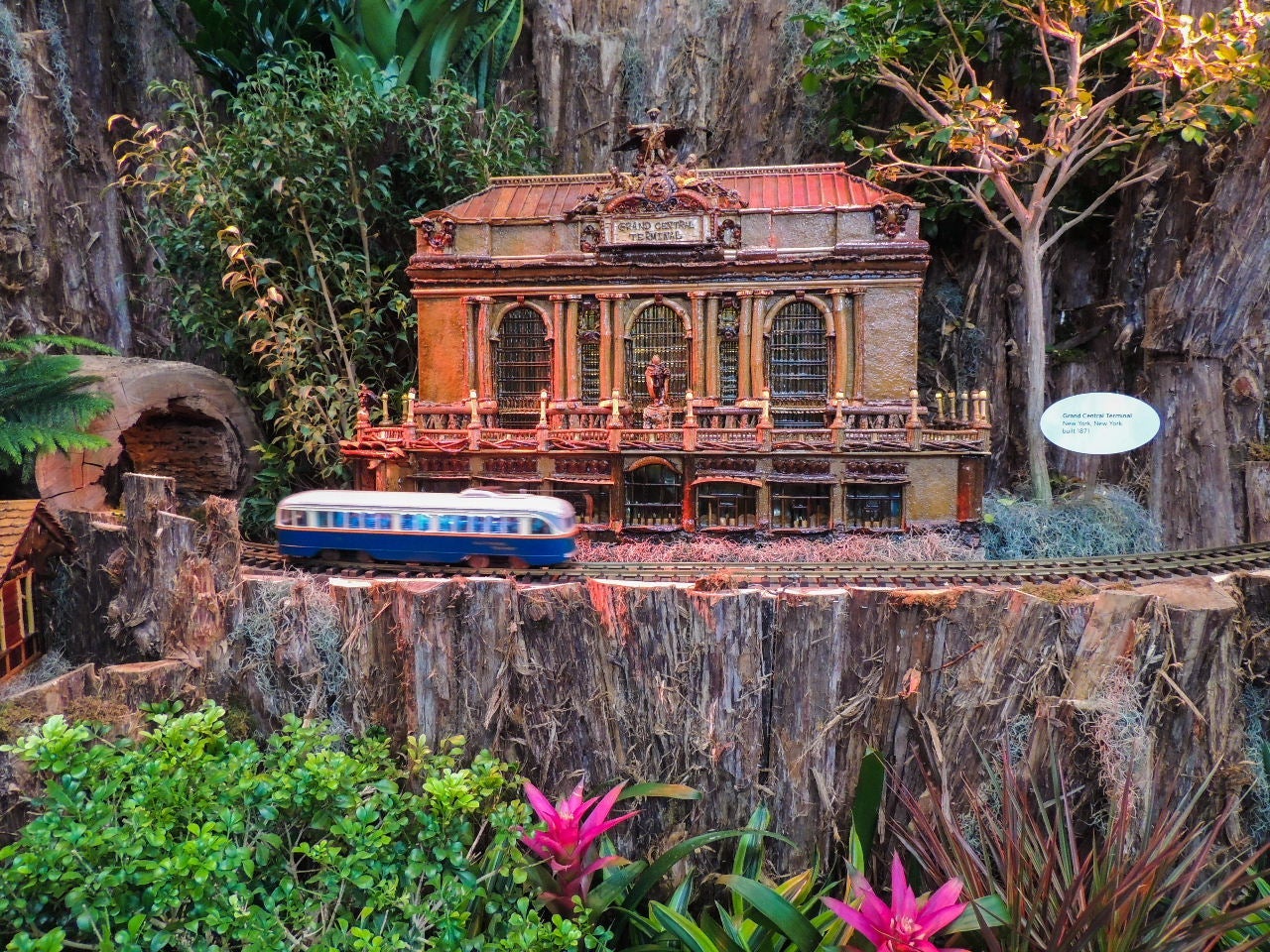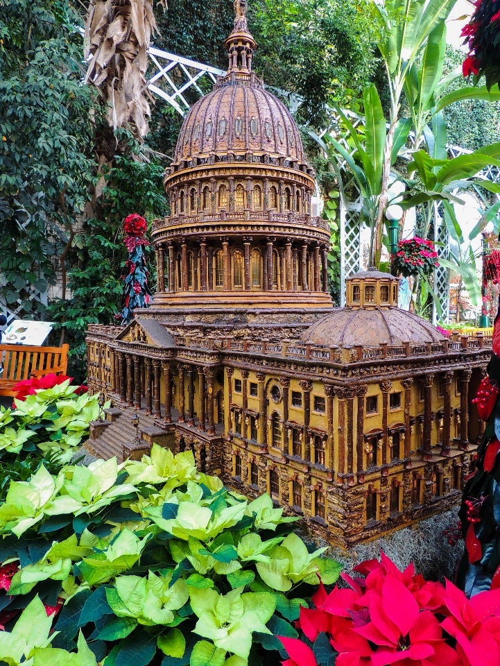 The United States Botanic Garden had a beautiful display of scale model monuments made entirely of plant material. The same artistic skill and methods were used to build the famous American train depots that were central to the garden's themed "All Aboard" model train exhibit.