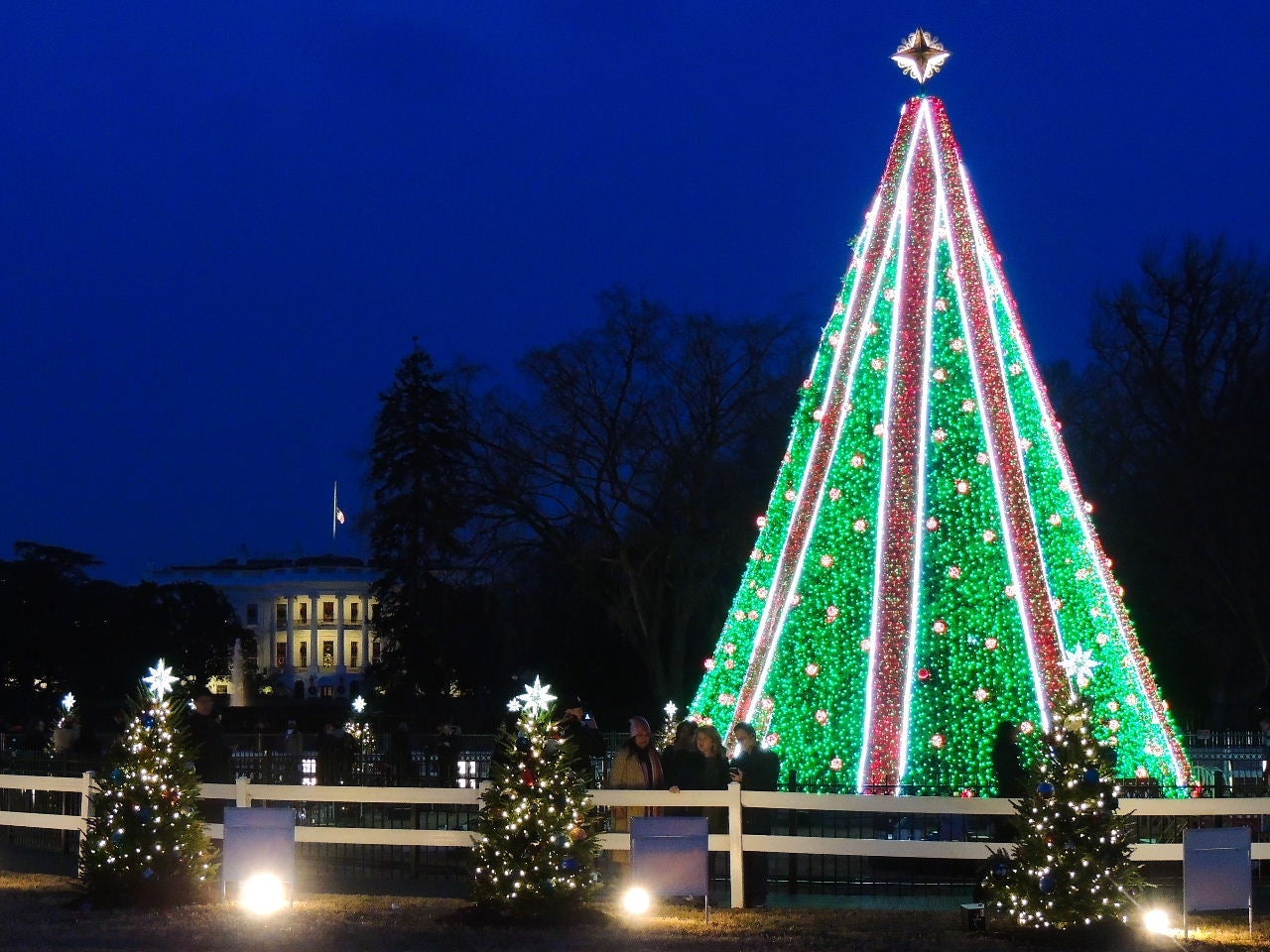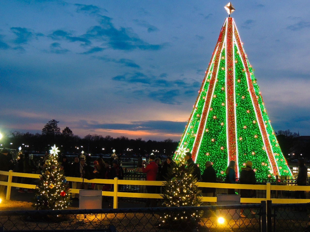 We spent part of one evening at the National Christmas Tree located on The Ellipse between the White House and Washington Monument. The tree is surrounded by 56 smaller trees that border a winding walkway and represent each state and territory. Trains are also an integral part of the National Tree display, with multiple sets surrounding the tree's base. Live entertainment is frequently offered, and at dusk, the atmosphere is magical as the red and green lights of the tree glow in the foreground with either the lights of the White House or the evening sky in the background.