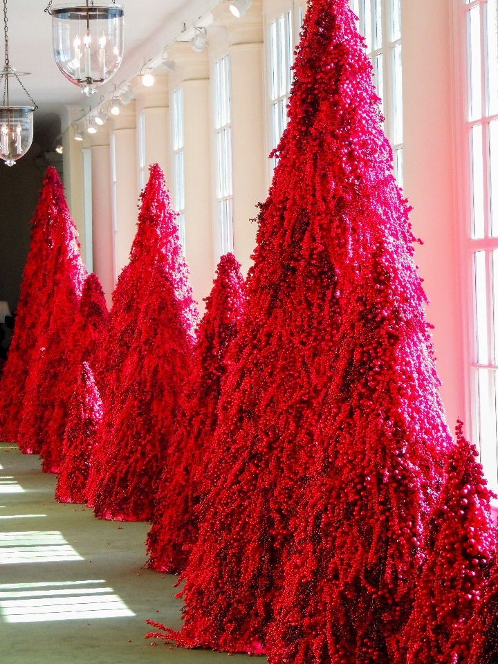 And, if the White House had not already impressed you enough with its Christmas trappings, when we passed the Kennedy portrait into the Entrance and Cross halls, we came upon an indoor forest of Christmas treasure.