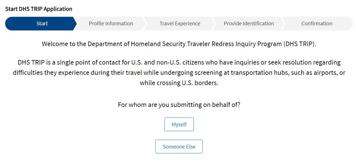 DHS describes the program as "a single point of contact for individuals who have inquiries or seek resolution regarding difficulties they experienced during their travel screening at transportation hubs — like airports — or crossing U.S. borders."