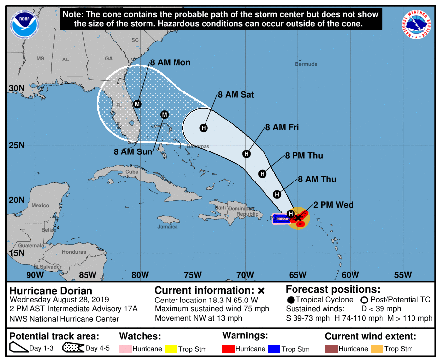 This time, it's Hurricane Dorian who has shook up the projections and gone from a tropical storm to a potentially serious hurricane in a short amount of time. I'm going to assume those who live in hurricane zones know what to do to prepare, but if not, NOAA's National Hurricane Center has a great Hurricane Preparedness page to get you going.