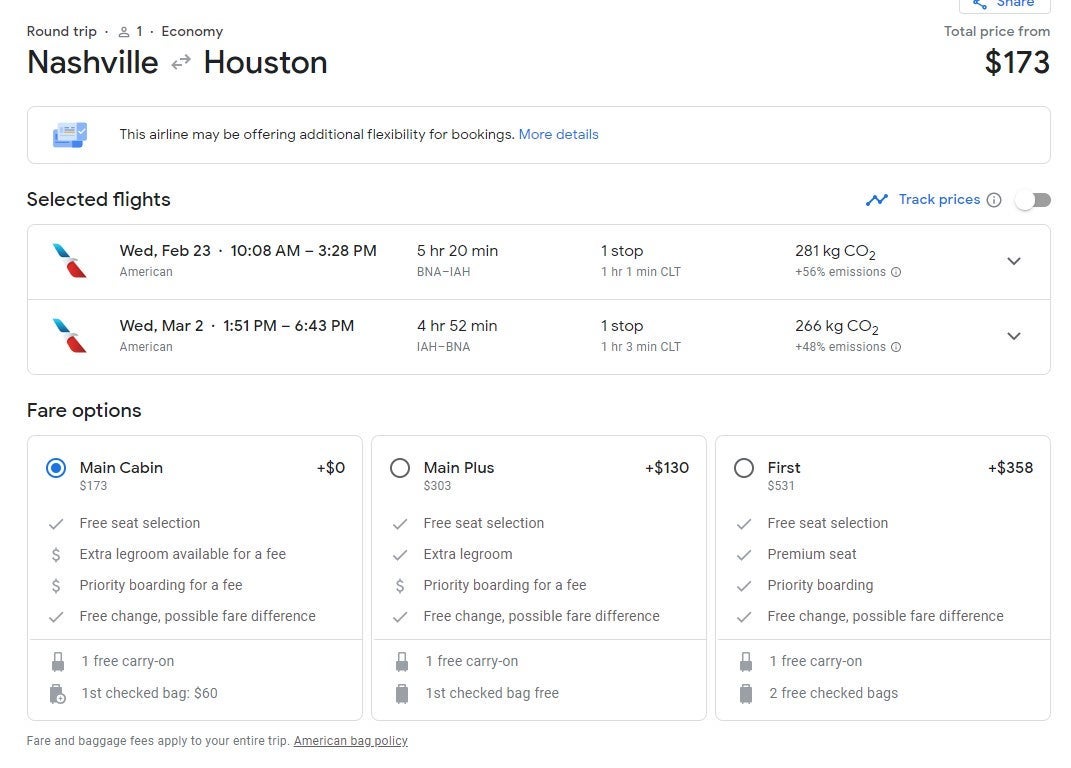Go from the Music City to Space City on a $173 round-trip flight from Nashville (BNA) to Houston (IAH) with short layovers in Charlotte (CLT) each way.