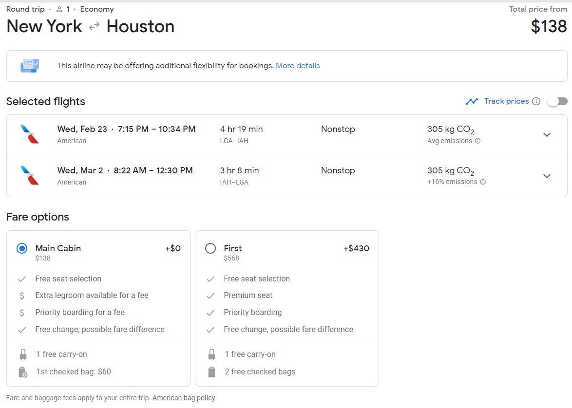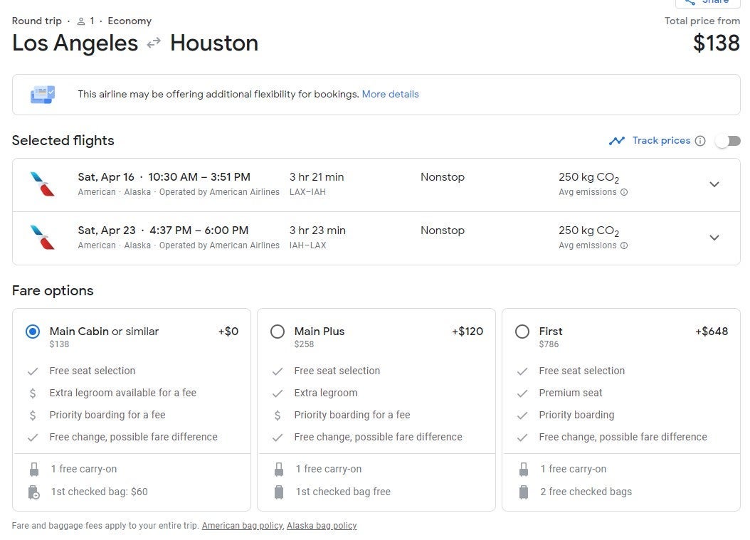 For the same $138 price, travelers on the West Coast can go from Los Angeles (LAX) to Houston (IAH) round-trip on a direct flight in the middle of April.