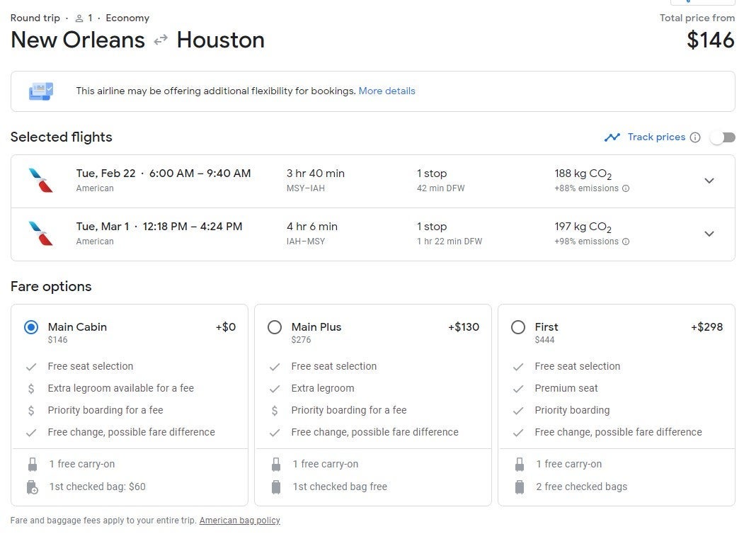 You can travel from the Big Easy to the Lone Star state at a great price as well. For $146 round-trip, travelers can go from New Orleans (MSY) to Houston (IAH) with short stops in Dallas (DFW) each way.